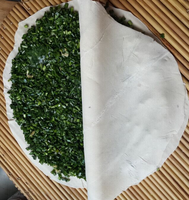 我去后面菜园割的韭菜,话说自家有菜园真的是够方便啊,想什么时候吃就什么时候吃!有菜咱任性哦!老爸帮忙一起择的,择好后因为我暂时不能用凉水吧,所以我都给老爸端过去四盆水,一口气让他帮忙洗干净了,好来,空一会儿水分吧,我去和面喽!这不和面,切馅子,一切准备就绪,开工 我活的面团总共是分成了6个剂子哦,就是小拳头那么大小啊,其中两个已经被拿走了 ![]() ![]() 在我勤奋的练习之下,看看我擀的皮是不是够圆圆了啊 ![]() 个人感觉这一张皮算是最圆圆的了吧 ![]() 其实根本我的个人经验之谈哈,这皮只要够大,擀开来了,不用那么的圆,放到锅里一烙,还是一样的好吃啊,关键是馅儿啊,我这次的韭菜馅抓了一小把虾皮进去啊,虾皮好吃又补钙啊!大赞,放花椒面、油调好,盐一定要最后入馅的时候再放哦,不然早搁了盐,馅子会塌下的,一定哦! ![]() 放馅,因为是自家纯天然的馅儿,所以我放的特别的多,这样的饼才够皮薄馅多多啊! ![]() 哦,对了,将馅儿摊平哦,每个饼加一个鸡蛋哦,分量是不是又足了些啊!这次放的是鸭蛋,自家养的鸭子啊,将鸭蛋磕一个小洞,用一根筷子深入鸡蛋里搅散蛋黄,然后均匀的撒到馅儿上啊 ![]() 接着将面板上的冰皮用擀面杖送过来哦 ![]() 按合周边,使劲哦,不然入锅一硬实会开哦 ![]() 拿出另一个盖垫,压到饼上,然后两个盖垫互换位置,好了,就是翻面哦,这也是必须的一步,这样能够避免因为按边时导致的饼与盖垫的粘合情况出现哦!祖传的,必不可少的一步啊 ![]() ![]() 好了,可以放入到预热好的鏊子了哦,没想到这次这么成功啊,看我擀的饼和鏊子一样一样的大啊,一面出现这种酥黄可以翻面了哦,效果不错吧 ![]() 正当我最后一个菜饼入锅的时候老妈进门了,天啊,我忙活的忘记看表了,竟然已经十二点了啊,我的老妈更是无敌,这么热的天干活到这个点儿,真是太辛苦了!我凶了老妈一顿,老妈立刻转移话题说:哎呦,闺女,你不是不舒服吗?怎么还给我们烙菜饼啊!哈哈,我知道你们爱吃我就做了啊,我老爸帮忙的,没事啊~这不直到吃饭的时候老妈还说呢:恩,我真是做梦也没有想到会吃上菜饼啊~!哈哈,老妈不要这么说嘛,前几天闺女我不是刚刚做过吗?咱有手艺,有足量的韭菜,怕什么?想吃随时命令就是啦! ![]() 本作品未经作者许可不得转载,转载请征求作者意见。擅自转载使用,将保留追究其法律责任的权利! |