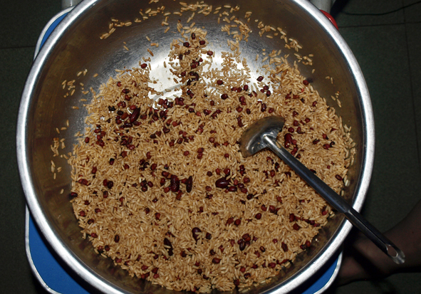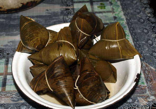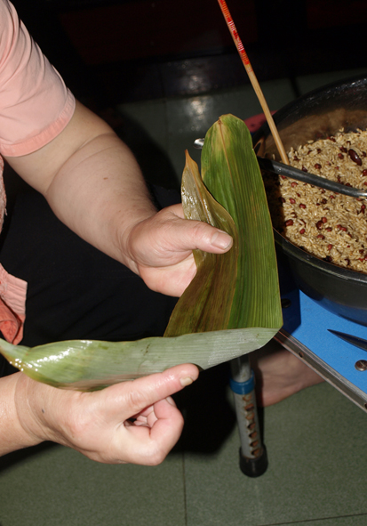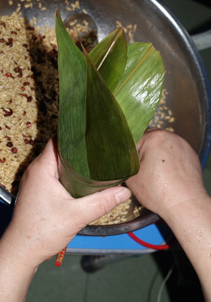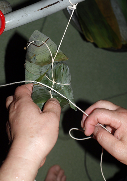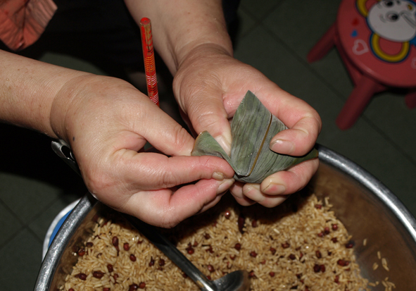 呵呵!包粽子喽!不过这不是我包的哦,是我亲爱的妈妈包的粽子呢!包粽子可是我妈妈的拿手“好戏”呢!她抱起粽子来速度飞快,还没有等我拍完这几张照片,她的粽子就包完了。你们说她动作快不快呀 ! 准备好新鲜的粽叶,洗干净再滤干水!这个粽叶大吧,是我小姨家里自己种的呢!妈妈说粽叶大比较好包粽子! ![]() 妈妈精心的配料:糯米、红豆、花生米、油、再加上点儿碱....... 装入干净的盆子里,搅拌均匀,待用....... 拿两片粽叶并列放好,卷成一个漏斗状。 卷好后,用勺子把糯米舀进去..... 装好后要再压紧实来,这样包出来的粽子有嚼头,有口感..... 在两手用力的配合下包成四个角的形状........ 妈妈把捆粽子的线绑在凳子,这样扎起来时既方便又省力呢!是妈妈想出的好办法哦! 勤劳的妈妈,辛苦的妈妈,我的好妈妈! 包好后要先浸一会儿水,浸好后旧可以放进电饭锅或是压力锅煮了哦! 一般要煮好久的,每次妈妈都是吃过晚饭包上,然后就上压力锅煮着,睡觉前把火关掉。第二天就可以吃到又香又糯又好吃的粽子啦! 看呀!这就是最后的成品了,味道真是没得说了哦 !好吃!咬上一口啊!好粘嘴巴呢!香甜糯口哦!
