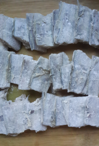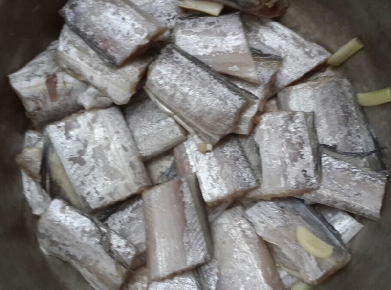 话说小子自打来到姥姥家就没有吃过黄花鱼了啊,这要是在爷爷家,三天两头儿的都要吃的额,可以说是他的主粮啊,没有了黄花鱼咱可是有带鱼哦,这不我从冰箱里拿出先前整理好的带鱼段来了,给小子炸带鱼,这也是小家伙的最爱之一哦 首先就是向鱼段中加入适量的盐、花椒面、葱段、姜片来腌制半小时以后,因为老爸的腿受伤后家里就不敢买姜了,没有姜我就切了几片的蒜瓣片片,来压压这带鱼的腥味儿吧