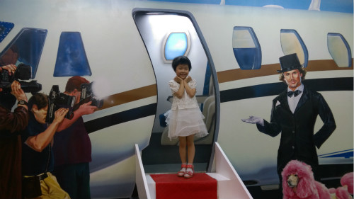 一楼是一个对外的展厅,如果时间有些赶,可以在一楼稍微体验一下,一楼都是免费的,当然背景相对少一点。有一个弹钢琴的,手指能动的画挺有意思,也能演奏出一段美妙的音乐呢。当然,更好玩的还在里面。从入口进去,直接就上楼了,二楼和三楼分布了各式各样的背景,供大家拍照游玩。不仅孩子在里面嬉戏,看到很多大人也乐在其中。有些场景更适合好友结伴拍照呢,比如闺蜜啊,情侣之类的,闺女的个头有点小,照出来的效果要差一些。 ![]()