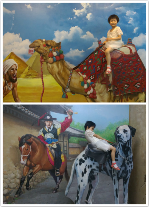 比如,这个明星出场感觉的,就有一个真的楼梯,是站在上面拍照的。 还有一些可以骑在上面照相的,比如骆驼啊,斑点狗之类的,很贴心的在上面设计了一个小的平台座椅。 还有一些是可以躲到后面露出脑袋的场景,拍出来也很逼真的感觉。 借助道具感觉果然不一般啊! 本作品未经作者许可不得转载,转载请征求作者意见。擅自转载使用,将保留追究其法律责任的权利! |