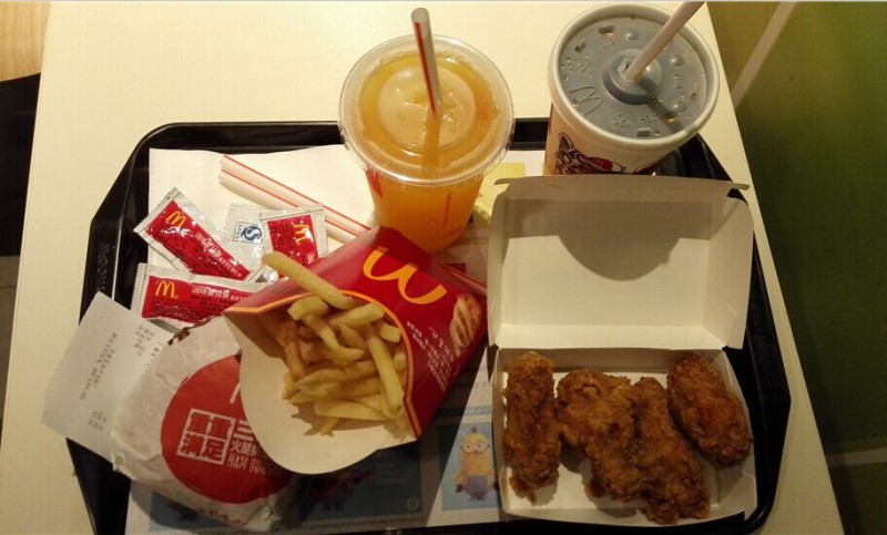 ![]() 接了大宝,也没事先告诉他要在外面吃饭,大宝看我们没往平时回家的路走,而是去了超市的方向,就问是不是去逛超市,我说不是,我们去吃饭,今天在外面吃。宝贝们一听就兴奋了,我正准备带着宝贝们去面点王的时候,小家伙们不干了,硬拉着我要去隔壁的麦当劳,我是真心不想带宝贝们去吃这种快餐食品,平时一年几乎也去不了几次。于是,我开始诱惑宝贝:“我们今天不去麦当劳,去面点王吃你们最喜欢的酱骨架,好不好?”两宝像商量好似地一致摇头,然后就开始用撒娇装可怜的口气说:“妈妈,你就带我们去吃一次吧,我们都很久没有吃过了。”其实我很想说,能有多久啊,记得六一儿童节的时候才吃过呢。不过看到宝贝们的表情,我最终还是被打败了,好吧,就带你们去吃吧。 ![]() 按着宝贝们喜欢的口味给他们点餐,想给两宝都点果汁,可是大宝要喝可乐,平时难得喝的饮料,这次瞅准了机会都要了大杯装的,小宝喝果汁,大宝喝可乐,鸡翅来了两对,薯条来了大盒的,汉堡嘛小宝压根不吃,大宝却喜欢得很,自己选了个三层的火腿汉堡。点好了餐两宝就开吃了,我呢不太想吃这类食品,所以就等宝贝们吃完了以后再去面点王打包了一份面条回家吃。也怕宝贝们吃这些会吃不饱,所以买了面条,还打包了一点小点心回去给宝贝们吃。计划的一顿大餐因为宝贝们的要求,全给打乱了,只能改天再去吃了。