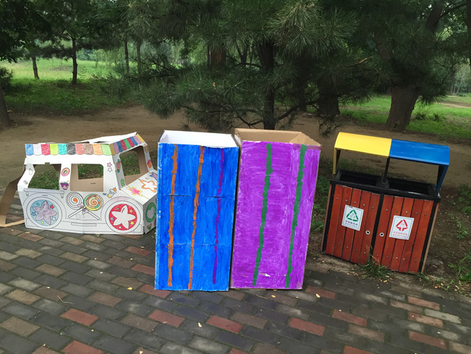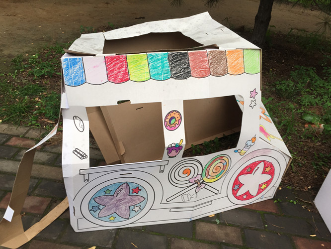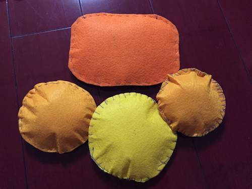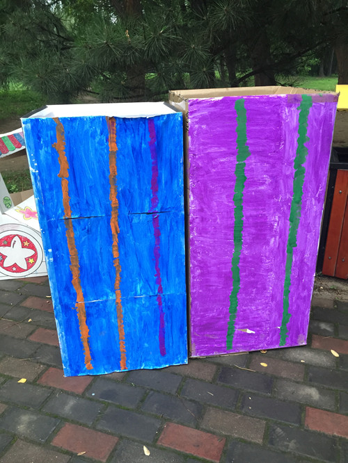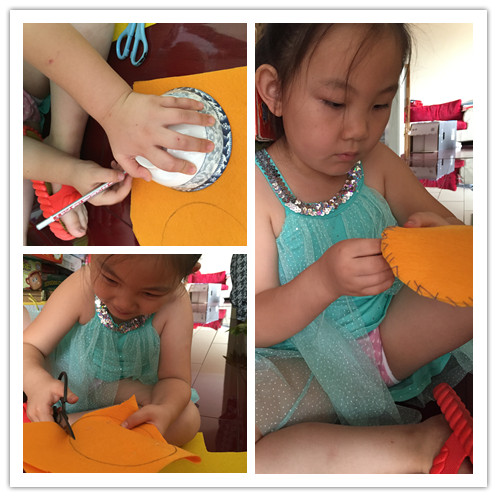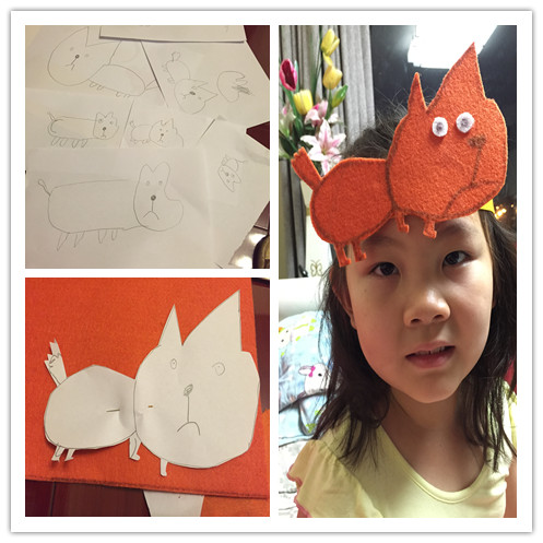 ![]() 七月四日要演绘本剧《一只叫长腿的狗》。真的太兴奋了。并且很荣幸的当上了这次绘本剧演出的“导演”。压力真是大啊!为了能演好这次绘本剧。那么道具也是必不可少的。既然咱是导演,就要承担的更多。能我来弄得的,我就弄了。并且这样更有利于我导绘本剧。 第一部分道具:垃圾站! 由于故事主要讲述的就是一群流浪狗的故事,那么流浪的狗,生活,获得食物的主要来源就是垃圾桶,或是垃圾站。在根据故事需要,小健这群流浪狗跟长腿生活的空间不同,所以需要两个垃圾站。两个不同的垃圾站,代表的意义不同,那么生活的空间也就不同。 小健这群流浪狗的垃圾站,就选择了家里的一个涂色糖果车,放置了很久了,终于派上用场了。本来美爸爸就闲它占地,希望我处理呢 ,看看是不是符合了垃圾的味道。 ![]() 长腿的呢?因为在小健的那群流浪狗中认为,长腿是生活在城堡一样大的房子,吃的也好。而事实上,故事书中,长腿吃的好像就比小健们的好。那么就需要,大一点有模样的垃圾站。想来想去,家里没有这样的巨大的东西。最后美美建议我可以大纸箱子,就这样在楼下收废品哪里弄到两个大纸壳箱子。并且大小非常符合我的想法。拿回来后,开始涂色。没有绘画天分的我和美美,开始涂色,垃圾桶一般都是蓝色的,可由于蓝色颜料不够用了,美美又说,妈妈不急,咱们可以创意啊,画不同颜色的啊。小丫头,想法还挺多,所以形成了两个不同色系的垃圾桶。记得当时发给大家看时。DUDU无意中的回复:游泳池。让我感觉我们涂色涂的真想游泳池啊。 ![]() ![]() 第二部分道具:头饰! 做这个的时候,美美是牺牲了晚上娱乐时间的。为此美美自我感觉太伟大了,竟然牺牲了宝贵的玩的时间。 由于我和美美都没有画画的天赋。弄起来真的费了好久的时间,也由于我要求头像要比较像些,美美和我在白纸上画了无数张底稿,而画的小健,不是身体大了,就是脸不像了,还好美美一直都没有妥协,最后两个人选择了一张,比较满意的。 所用材料不织布。只要看DU在微信上,是用不织布了,感觉做出来的头饰非常好看,并且颜色也很到位。所用我们也用了不织布。在不织布上临摹,然后剪出,最后用胶枪,粘上。 ![]() 另一个小狗头饰(准备给零时来参演的小朋友备用的),就没有这么费劲了。因为可以随意发挥创作了。就找来了家里一本关于小狗的书,临摹了一下,就简单的出来了。 ![]() 第三部分道具:土豆饼和汉堡土豆饼和汉堡是故事中的食物,这个要是在表演的过程中,可以用姿势代替,可是想想如果有了呢,这样更生动,也减少了孩子们的表演,减少了难度,因为大家都不是专业的。那么有了道具,更人“观众”理解,孩子在干什么。 那么做这两样东西,是在最后出发前,才做的,我一直没有想好怎么做,才更像,用什么东西来来做。最后还是美美说,妈妈就用不织布缝吧。然后就拿来碗,在不织布上临摹了一个圆,按照形状剪出圆形,找来蓬松棉当填充物。这样一个汉堡就做好了。土豆饼也是这样做的,只不过,是我剪的,然后我给缝制的。感觉就是比汉堡大了一圈。 颜色也都是美美定的,说黄色比较靠近汉堡的颜色。三个汉堡,一个土豆饼。其中两个汉堡是美美自己缝的。 ![]() ![]() 总结一二。 非常感谢有这次机会可以动手做道具,整个动手制作的过程中,美美都主动请缨,主动参与,并且还帮助出主意。让孩子在制作的过程中,体验到要参演一个剧目的,是需要很多努力的。并且,动手制作,也增加了亲子关系,亲子和谐度。可以让我和美美,体验到一起为一件事努力的快乐。