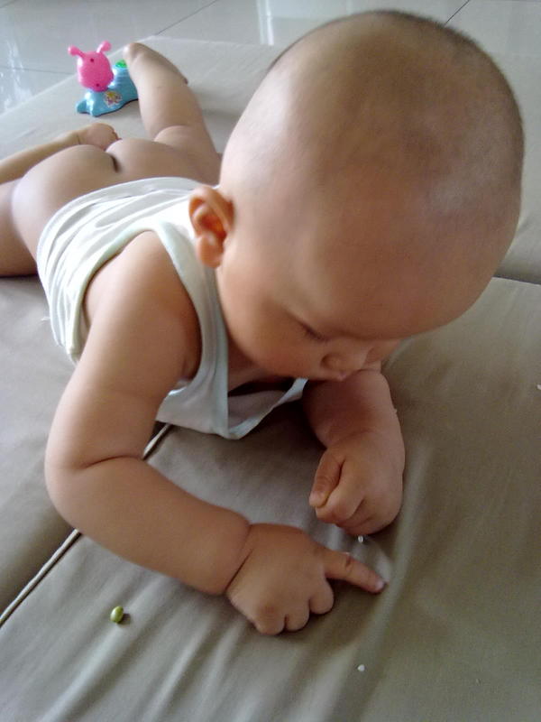 为了开发宝宝的智力。给他弄大米和豆来玩。那肉乎乎的小手捏呀捏,真可爱。