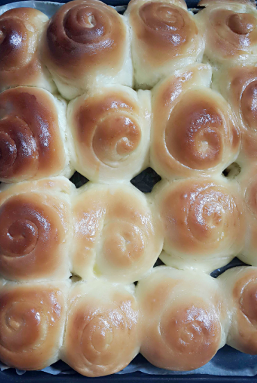 今天早上吃过早饭拾掇利索了看看表竟然还不到九点,哇,不错不错,抓紧时间烤中午还能落着吃啊!这不拿出我的工具,乒乒乓乓的摆满了桌子!称称量量的我从来都不嫌麻烦的哦!这次我加奶粉的时候小子看到了,嚷着要奶粉吃,这不给他一勺吃吧!谁知不碰巧的是家里的白糖也不够用的了,这大太阳天儿的实在不想出门,豁出去了,用糖分吧!虽然优点小奢侈,但毕竟是自己吃嘛,无所谓喽!好吃最重要啊!看看我的材料表吧! 高筋面粉:300g 牛奶:170g 白糖:60g 黄油:25g 鸡蛋:60g 盐:2g 酵母:5g 1、初黄油外的所有混合,揉至有粗膜 ![]() 2、加入黄油,因为现在外界温度满高的啊,所以我也就没有将黄油切割成小粒,直接就整块放入的哦,很快,黄油就会和面团融在一体啊! ![]() 3、揉好的面团,能够比较的光滑,也不会再粘手了哦 ![]() 看看这次我拉的手套膜还不错吧?哈哈,还是靠我的手工比较给力啊!手套膜形成后即使有破洞,洞的边缘也比较的规整,说明面团就揉到位了哦!好了,盖好盖垫,放到门口醒着去吧! ![]() 一个小时之后面团醒好啦!哇!我的鉴定结果都过去十五分钟我才得空过来给它排气啊,这才响起拍照吧! ![]() 因为这次做面包的时候没有人帮我看孩子,所以我也没来得及排具体步骤,容我来念叨,念叨吧! 做这款蜂蜜小面包一定要在烤盘上刷油,再准备一碗水,准备底部蘸料(白芝麻10g,低粉10g,糖粉10g) 1、将面团分割成了9份,然后再醒十分钟左右 2、拿出一个面团,擀成长舌状,翻面卷起,在竖直卷条再次擀开成长舌状,将此面团从中间切开一分为二 3、将切口处蘸水,然后再蘸底部蘸料,依次摆入烤盘! 好了,一盘整齐的蜂蜜面包弄好了,再次盖好,出去醒发吧! ![]() 话说我也要入烤箱了,家里也开饭了,我心想小面包醒的不错了,别醒过了劲啊,于是乎把烤盘端进屋里来,放到了烤箱前的小床上了,预热上烤箱我就叫着儿子取吃饭了,谁知他吃着吃着就跑了,当时我光顾着让他多吃点儿了,都把面包的事儿忘干净了,等到烤箱预热好了我准备去放烤盘时傻眼了,啊啊啊,儿子竟然把我的面包给做了,气死我了,我一上午的劳动果实啊!婆婆说:你看你盖的这么好,孩子也不知道啊!是啊,都怪我自己太大意,忽略了这个淘气的家伙!嗯嗯,不管了,刷上蛋液入炉啦!170度,20分钟…… 时间到,看看我的蜂蜜面包吧,哇,很不错哦,喜欢喜欢,抓紧时间刷上一层蜂蜜水(1:1)吧!刺啦刺啦的真好听,出炉凉凉就可以吃喽! ![]() 儿子看到面包直兴奋的喊:妈妈,你真厉害,你真的给我做面包了,妈妈,我好喜欢你啊!这个小马屁精,还没吃到嘴里就是一通的夸奖啊,好来,妈妈我照单全收啊!抓紧时间给我掰一块放到嘴里,开心的哦!妈妈,我不怕热,我变勇敢了!吃着好吃给爷爷奶奶又一人分了一个,这次还真是小乖乖啊!好孩孩! 哦,天啊,我这个馋猫也坐下来,啊呜啊呜的吃了起来,一口气两个下肚,可是我还有一盘排包等待入烤箱呢,抓紧时间刷蛋液,撒芝麻,继续烤吧!又跟儿子玩了起来,这次儿子自己拿着一个蜂蜜面包一会儿就吃光光啦!再来看看我的排包吧! ![]() 刷的蛋液有一点儿多,颜色有那么一点点重了啊,不过没关系哦!这不排包刚刚出锅,邻居嫂子来了,那叫一个夸奖啊,哎哟,这么好吃,那么好吃,还建议我去卖 ,真是够给力啊!一会儿邻居宝妈又来了,来尝尝,说道给宝儿拿两条啊!自己做的,图个新鲜吧!![]() 再次看看我的蜂蜜小面包还真是好啊,我决定了,以后我的面包就奔这蜂蜜面包去喽!太好吃啦!小家伙拿起来也方便啊,主要是添加了蜂蜜味道超棒哦!我不喜欢市场的蜂蜜面包,太甜了,吃了直接齁嗓子啊!自己动手也很方便哦!主要是新鲜出炉哦! 本作品未经作者许可不得转载,转载请征求作者意见。擅自转载使用,将保留追究其法律责任的权利! |