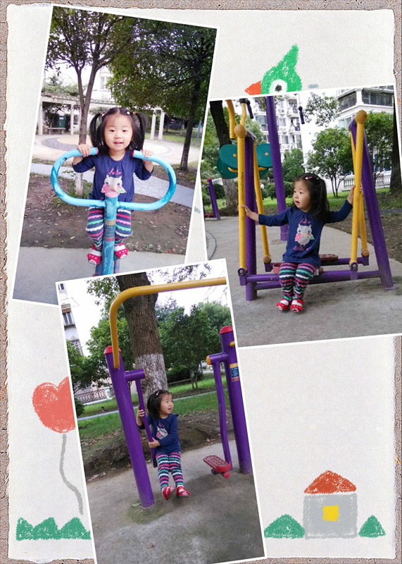 为了让小妞感受蚕宝宝的奇妙一生,也让她对《好饿的毛毛虫》绘本有更理性的认识,我为小妞买了十多条蚕宝宝开始了养蚕之路。想不到小妞对这些蚕宝宝还挺感兴趣,不但观察它们吃桑叶,自己也好奇把桑叶放在嘴里尝味道! ![]() 待到蚕宝宝吐丝结茧时候,小妞居然自己裹到浴巾里模仿起来。那天我在厨房忙乎,就听到房间里传来“救命!”我马上跑过去,只见床上一条“大蚕宝宝”,小妞竟把自己裹的严严实实动弹不得了,真是好气又好笑。 翻着花样各种玩 ![]() 淘气的孩子总有好动爱玩的天性,小妞也是如此,别说滑梯滑的溜,连小区的健身设施她也样样在行。别看她个子小,自己“蹭蹭蹭”爬上去,拉起扶手就开玩。就连走步器也不在话下,还自己发明了坐在上面荡秋千,真是苦了裤子乐了娃。 搞怪大王就是我 ![]() 我们除了“武皮”在家也会“闷皮”。这啥叫闷皮呢?瞧,这妞玩着玩具恐龙就自high放声笑起来。原来是用橡皮泥给每个恐龙都穿上了小背心,这是来自《鼠小弟的小背心》的创意吧。创意完毕,自己也乐得大笑。但后续在凹凸不平的恐龙皮肤取下这些橡皮泥就不是容易事了。创意妞大师玩乐后,留下辛苦妈妈带着刷子忙晕在厕所。。。。。。