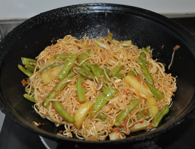 ![]() 山西省很多地方是盛产土豆的,离我们这里近的县市有忻州地区的宁武,五台,偏关这些地方都是产土豆的小县城。那么土豆自然会成为我们饭桌上不可短缺的蔬菜之一了。平时我们喜欢吃也是吃的最多的土豆做法就是醋溜土豆丝了,这道菜那是人人爱吃,不分男女不分老少。即使就这么一种最家常的炒土豆丝每个人做出来的口味都是不一样的,这里和选土豆也是有相当大的关系。 最近每天在医院陪侍老爸,是没有很多时间为家人做饭了,更别说什么创新菜了。活动重在参与,前天晚上要给老爸做第二天的焖面,于是想到了土豆焖面,当然还是少不了平时做焖面的主角——豆角。下面就来呈现我做的双豆焖面吧。 需要的材料: 土豆一个 豆角半斤 西红柿一个 (根据自己家情况选择数量)葱蒜 做法: 1.豆角(选用的就是两个胖儿子给择的豆角)整根浸泡十分钟后冲洗后掰成小段,土豆切长条,西红柿刮皮切碎。 ![]() ![]() 2.热锅倒油,放入葱爆锅后放入豆角翻炒,把豆角都要变成嫩绿色也就是变了颜色之后放入土豆条,继续翻炒,翻炒 再 翻 炒。菜一定要多翻炒出来才会香,而不要早早的加入水来煮菜。翻炒后倒入开水一定要莫过土豆和豆角,然后盖盖子焖,中火哦。 ![]() ![]() 3.会做饭不会做饭的妈妈们都知道豆角不熟会中毒的,土豆如果买的不是那么棉的,也要炖上一会儿后才能绵软好吃。等到锅中的水已经减少不少了,也就是已经把豆角和土豆露出来的时候,放入西红柿酱,这个西红柿酱里面加了盐和 鸡精,生抽老抽陈醋香油调配而成的,然后和双豆一起翻炒几下,然后 把面条整齐的放入锅中菜上,盖盖子继续焖。 ![]() ![]() 4.面条细会很好熟的,大概有七八分钟就可以了,这个时候一定不能用大火,而是比中火又略微小一点的火,要注意锅中汤汁的情况,不要糊了锅和菜。 ![]() 5.关火打开盖子,很恰当的就是锅里没有了汤汁,而面条也刚刚好。把菜和面均匀的搅拌起来,香喷喷的焖面就好了。 ![]() 夏天的我们焖面是经常吃的饭,牛不喜欢吃面,可唯独喜欢吃焖面,当然是肉焖面就更喜欢了。再配上老爸自己用老汤腌制的糖醋蒜,那香的让你只咽口水。我们配上老虎菜,那不吃两 三碗是绝不可能的。最后说一句关键点,不管是什么菜的焖面放水的多少很重要,我这也是经过不断的练习和学习之后才可以做成现如今这样的程度呢。 本作品未经作者许可不得转载,转载请征求作者意见。擅自转载使用,将保留追究其法律责任的权利! 评分记录