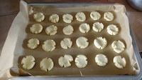 8、将小圆球放在烤盘上,用大拇指按扁。按扁的时候,饼干会出现自然的裂纹