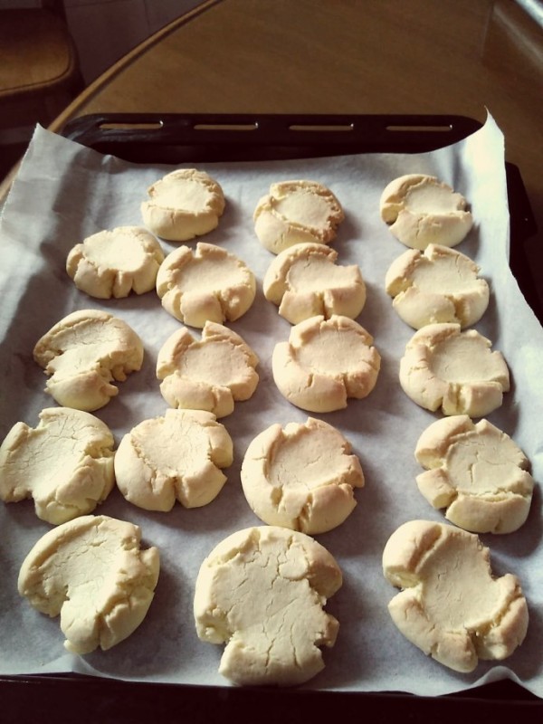 用料 : 低筋面粉 100克 玉米淀粉 100克 黄油 100克 熟蛋黄 2个 盐 1克 糖粉 60克