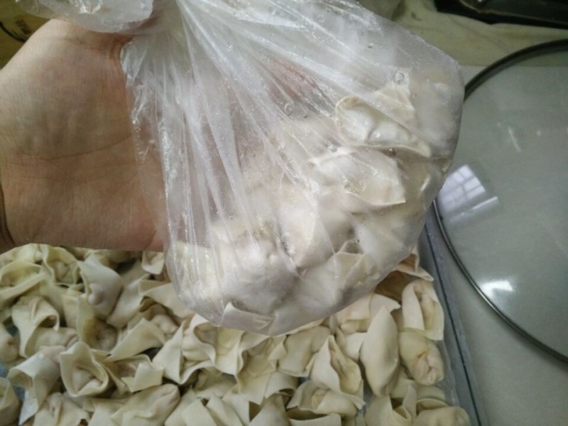 包的并不多,也就够Aric一个人吃十顿八顿的吧,不过不是这种算法,因为我和老公也爱吃,平时放在冰箱里冷冻着,想吃就拿出来煮,也非常方便。包好了以后,我就把馄饨抖抖,让馄饨不要粘黏到了一起,然后放进冰箱的冷冻层里。等着馄饨冷冻好以后,然后按照我们家的饭量,依次的装入保鲜袋中继续冷冻。这样老公也方便拿取,他知道我每次给Aric准备15个,而老公是25个。 今天的晚饭就是馄饨了,刚包好的,新鲜又好吃。Aric不喜欢吃葱花,不过这次给他放了点,总需要适应的。Aric吃的时候特别开心,一盘15个,加上一碗馄饨汤,原汤化原食,最好的搭配了。Aric吃的饱饱的,也给了妈妈一个很大的称赞,甚至于说家比幼儿园好多了,因为妈妈做的饭也比幼儿园的好吃。嘻嘻,宝贝满意就好,这样我也放心了,平时懒得做饭,就煮馄饨吃,省事省心啊。 ![]() 包好后抖开,放入冰箱冷冻。 ![]() 之前还有剩下的一袋,有15个,是Aric一顿的饭量。