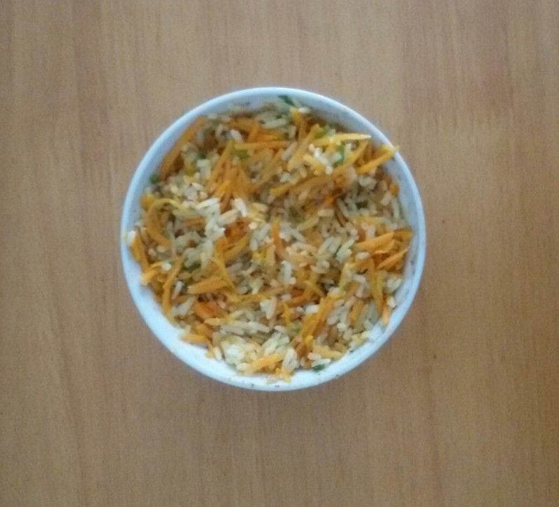 我一直很喜欢吃宝爸做的炒饭,于是今天早上叫他做胡萝卜炒饭,可好吃了。