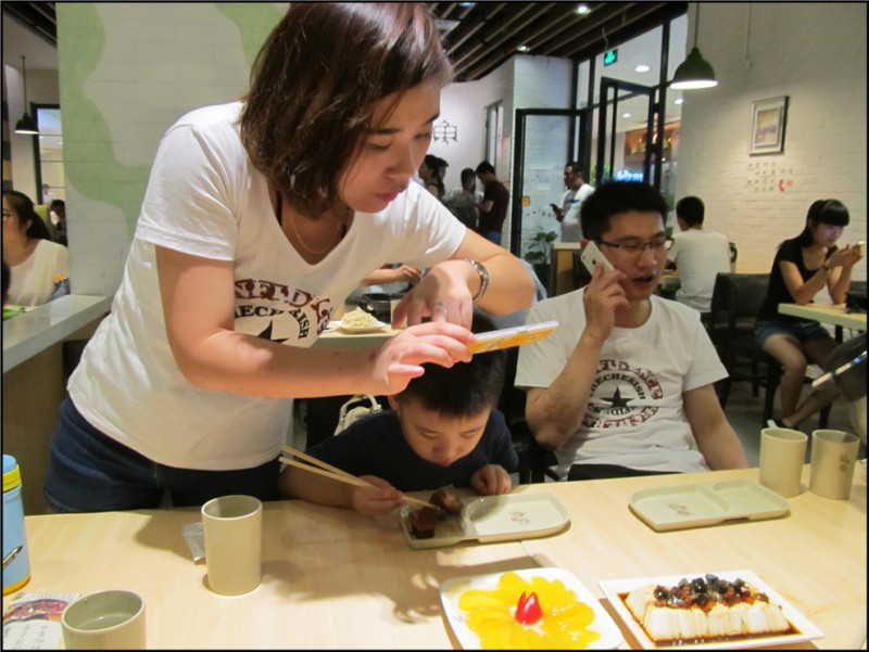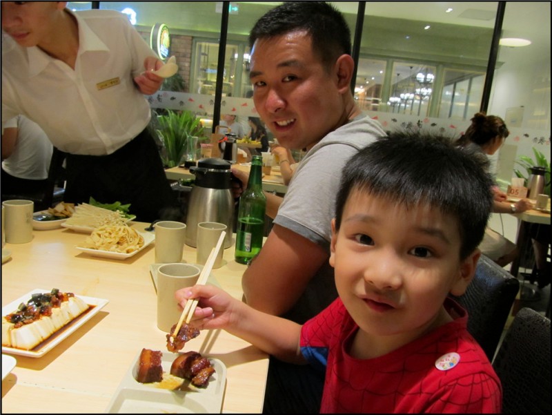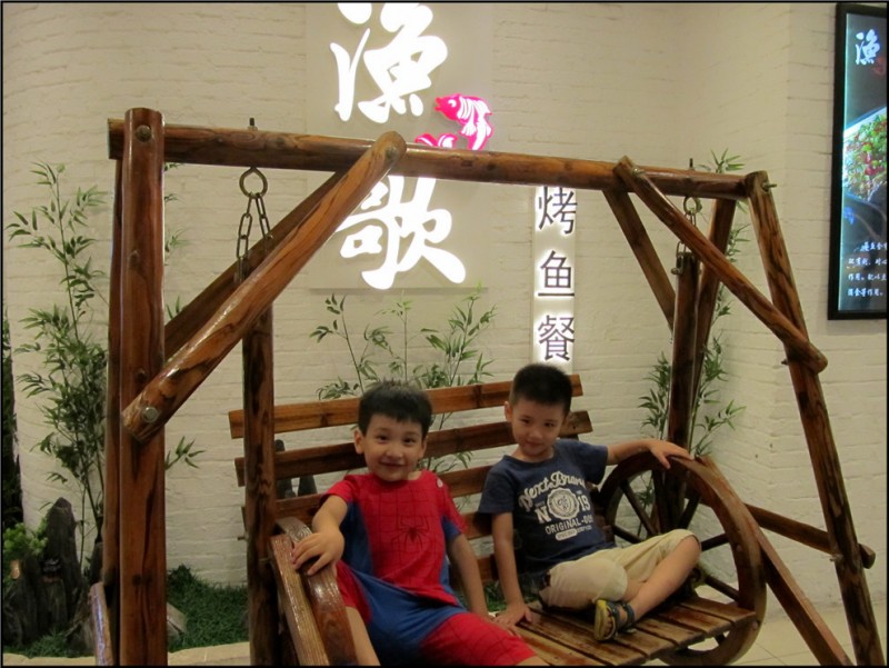 事实证明我还是比较靠谱的,在上来了美味的烤鱼以后,我只是看着不吃,只管两个孩子吃得饱饱的,然后带着他们出去玩,离开这个“是非之地”。老公不忍心我饿着,总是来给我夹鱼肉,最后全部送入了Aric的口中,一个劲的吆喝着“真够辣的!”除了烤鱼还有点了几个菜,有豆腐皮、金针菇、豆腐干、粉条等等,还有这家店比较有名的豆腐,这个我倒是吃了点,是非常嫩的豆腐加了调料凉拌出来的,比较爽口。老公还为我要了一杯奶茶,喝了一口发现还是挺甜的,就送到了Aric的手中,一点儿糖分的东西我都不能沾啊,呜呜,想想就可悲,减肥不易,所以平时一定要注意饮食的。 在我带着两个孩子去门外的摇椅玩的时候,老公和政宇爸爸以及闺蜜还在吃吃喝喝着。等过了半小时还没有等到他们进去却发现,好家伙,又点了四瓶啤酒,两个男人喝的那叫一个痛快啊。只好继续呆着两个孩子出去玩,顺便多走走当做锻炼。因为我们是在商场吃的饭,在我们所在的六楼有健身器材的售卖,我们就玩了一会儿跑步机和单车,我是汗流浃背的运动着,孩子们在旁打起,也是蛮愉快的。直到广播响起营业时间结束,再去寻找他们,还在吃着。看来以后还是得多让他们聚会才行,否则这难得的一次就让他们不舍得离开,两个孩子更是玩的痛快不愿意分开。 ![]() ![]() ![]() ![]() ![]() 闺蜜和政宇爸爸穿了情侣装呢,闺蜜平时喜欢发微信,哈哈,这不开始拍了起来吗。 ![]() Aric在吃着红烧肉,还没有来米饭呢,红烧肉已经吃光光。 ![]() 在餐厅门口有一个摇椅,两个小朋友特别喜欢,坐在上面让我帮他们摇着,讲讲故事,唱唱歌,倒也很惬意哦。