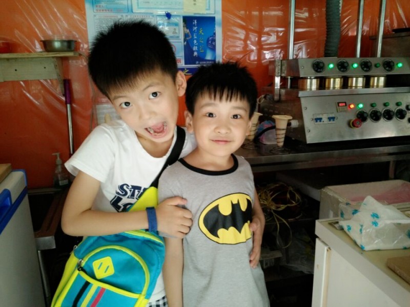好哥哥抱着弟弟买手握披萨。 ![]() 揉出来的面团只需要放入烤箱中,就可以烤出手握的面饼了。 ![]() 晒晒我家有爱的介然哥哥和Aric弟弟。 ![]() 因为弟弟和老板聊天,介然就捂住了Aric的嘴巴和鼻子,当时可是把我吓坏了。 ![]()