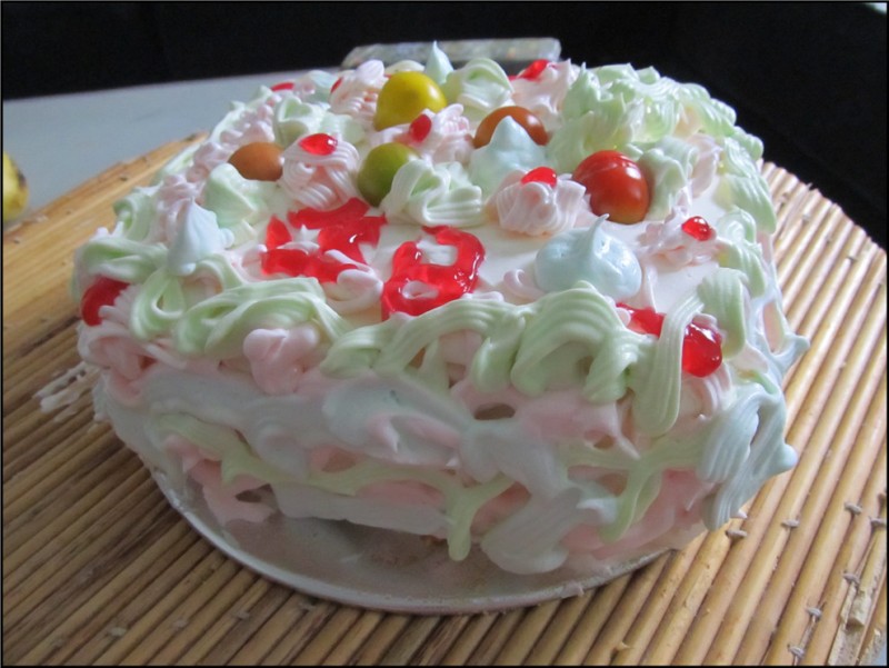 老妈还特地为介然准备了好大一桌子的菜,有孩子们爱吃的可乐鸡翅,还有我们爱吃的糖醋排骨,以及专门为男人们喝酒准备的凉菜、猪蹄子、煎鱼等等。在这里先为Aric和介然的姥姥,也就是我可爱的老妈点个赞,果然家有一老,哦不对,我家有两老,如有两宝啊。我们真是什么都不需要操心,一切都尽在爸妈的掌握中。有时看着爸妈辛苦还很心疼,可是老妈却觉得我们给他们帮的是倒忙,哎,做女儿难啊,哈哈。看着这一大桌子的美食,着实让我食欲大开,这时Aric突然提醒我:“妈妈,你不是要减肥吗?”额,感谢儿子的提醒,我想起来了,那就不吃了吧。 我们还为介然小朋友做了一个蛋糕呢,虽然不好看,但是胜在自家做的干净卫生。因为准备的材料不足,这个蛋糕做得真的很不好看,没有特色不说,就连生日快乐这四个字都写的很难看。这可不是我做的哦,是老爸老妈带着介然和Aric一起做的,所以虽然不好看,但是格外受到兄弟两个的珍惜和喜爱。介然说,以后过生日都要在姥姥家过,因为姥姥家有弟弟一起玩,还有蛋糕可以做,更重要的是有玩具可以收。哈哈,这才是孩子的心声啊。Aric也说了,等他过生日的时候,希望姥姥和姥爷不要插手,他要自己做蛋糕,肯定做的比哥哥的更漂亮。别说孩子了,就连我也特别的期待呢。