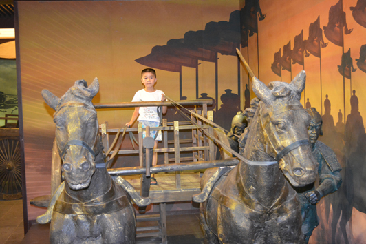 一入大门就有一个伟大人物骑着汗血白马,这就是项羽,项羽身高八尺,他是宿迁本地人,而他的妻子虞姬也是这里的人,里面不是很大,讲解员讲的时间为二十分钟,其余二十分钟是我们自由参观的时间,这里的温度很高,打着太阳伞也是没有效果,导游说今天这里的温度有四十度,而八月份来这里游览的话最热会有六十度的高温,想想好可怕,太热了。