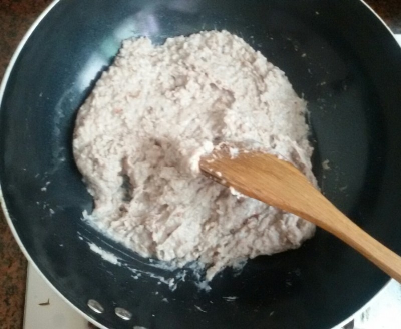 材料准备: 香芋半只150克左右,豆腐3块,猪瘦肉100克、生姜3片、韮菜30克、、植物油、盐、蚝油、酱油、生粉各适量 1、 香芋削皮、洗净擦丝,然后烧热锅,加入适量的植物油,再把擦好的芋丝全倒进锅里,加入适量的清水把芋丝煮烂,晾凉备用。 2、 猪瘦肉剁碎,韮菜切碎,然后加入生粉、油、盐、蚝油搅匀,然后再加入晾凉的香芋泥搅匀。 3、 豆腐切小块备用,然后分别把步骤2的材料塞到每一小块豆腐块里 4、 不粘锅洗净,烧热锅后加入适量的植物油,然后放入酿好的豆腐煎一下,煎好一面后再翻过来煎另一面,然后加入用生粉、酱油和水勾芡汁,然后盖上锅盖焖七八分钟左右即可关火。 5、 香芋酿豆腐煮好后,不要马上开吃,最好晾一会儿再吃,否则可能会烫到嘴巴。