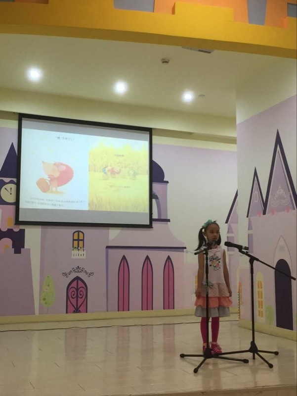 比赛开始了,前面几个小朋友都讲得不错,尤其是《是谁嗯嗯在我的头上》,这个故事讲得很棒,女孩的声音很甜美,讲起来从容不迫,表情动作都很不错,尤其是表现各种小动物的时候惟妙惟肖,我还给录像了,希望点点也能够学一下,这样的表情和语气。