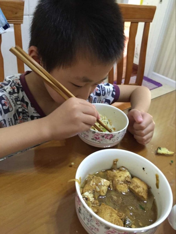 开始吃饭了,小伙子们都很喜欢吃这个豆腐,一碗豆腐两个孩子一扫而空,第一次尝试烧豆腐还是挺成功的啊,点点说下次还想要吃这样的豆腐,我觉得烧起来也很简单,下次再尝试烧一次吧。豆腐的营养成分也是很不错的,孩子喜欢吃才是最好的。