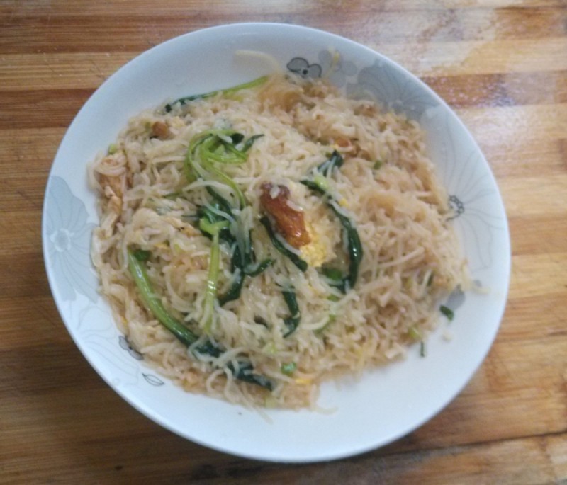亲做的炒米粉看着有点细,可像粉丝,我们这的有点粗