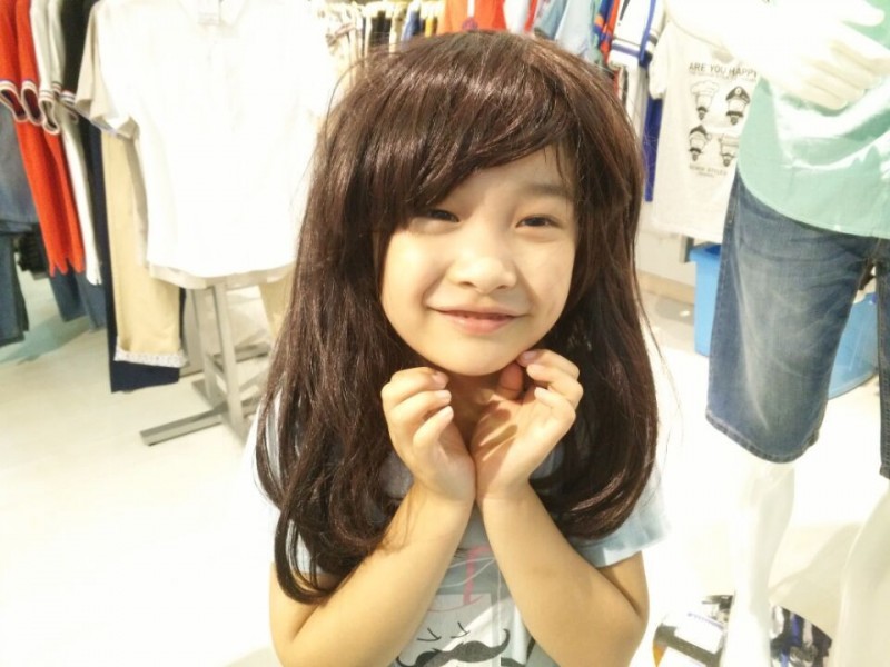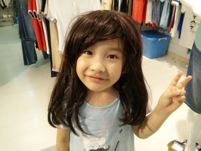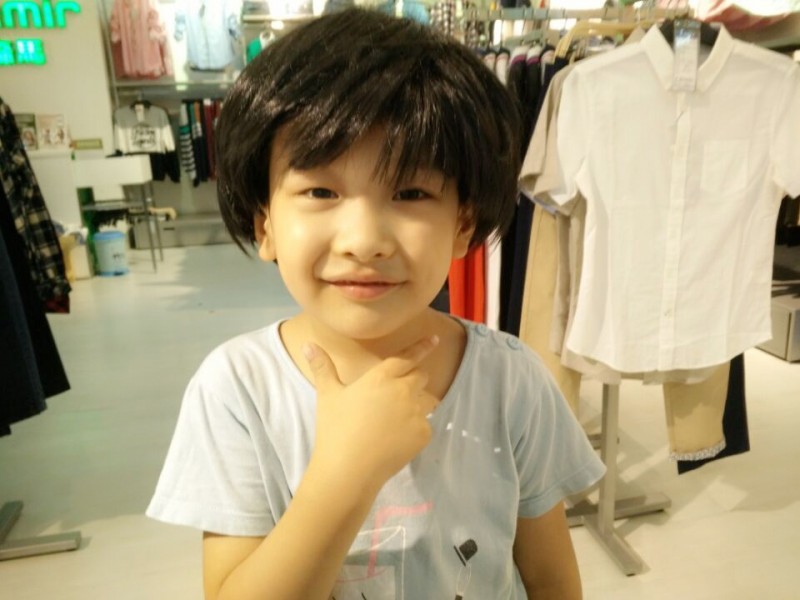 可惜假发没有弄的很顺,看起来乱七八糟的,Aric还特地把小手放在下巴前摆了一个女孩的动作,艾玛,太萌了,我好喜欢啊。我说以后你就这么打扮吧,绝对媲美那些小美女。Aric一听急了,赶紧摘下了假发,挺着胸膛说:“我是个男孩,男子汉!”逗得售货员也是忍不住笑了起来,爸爸更是坚定了要一个女儿的期待。不过我也发现了,不戴假发的Aric比较显得像6岁的孩子,而戴上了假发的Aric却显得比较小,虽然凯爸说这比较有成熟感,比较有韵味。 最后Aric试了一顶短发,刘海还是比较长,全部偏分处理,更是逗乐了我们,这就一傻根啊,哈哈。Aric让我们赶紧拍照,他也想看看。等拍好了照片,凯爸就赶紧把假发拿了下来,毕竟不是真发,会有点脏的吧。Aric看了照片后,点点头,说以后妹妹就是长得这个模样,很漂亮。他也很喜欢长发飘飘的那一款,像我,喜欢女孩长发。忍不住抱住了Aric,亲了一口他的小脸问他:“待你长发及腰时,娶我可好?”Aric腼腆的回答:“等我长发飘飘时,我就娶了妈妈,让爸爸流浪去吧!”哈哈。 ![]() 卖萌的小公主来也。 ![]() 再来一张傻根的照片,哈哈,傻吧?不过很好玩哦!