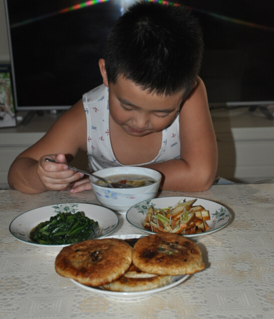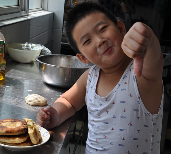 ![]() 昨天晚上就和儿子制定好了今天休息一天在家的具体工作, 就是包书皮按照老师的 要求准备学习用品。 我包书皮,牛削铅笔 做他可以做的事情,一直 忙活到中午12点 还没有做完。 中午 就我们娘俩人, 也就是昨天晚上就提前通知牛说好了中午给他做馅饼吃, 周日包饺子剩下的肉馅还有不少呢,一个人包饺子太费事了, 做成馅饼又省事而且还更好吃,然后再做一个汤就好了。 先把面和 好了醒上,然后开始调菜,做了凉拌油麦菜 ,还有葱丝熏干,牛要求我做蛋汤,我准备了黄瓜片西红柿鸡蛋, 想到昨天看到子凯妈妈的帖子里的浓香西红柿蛋花汤,牛也刚好要的就是这汤。都是非常简单的饭菜,唯独馅饼需要时间而已。 ![]() ![]() 等菜和汤都做好之后面也醒的差不多了,馅饼的面要求要软才可以,家里的和外面做的多少又有点不太一样。我也是自己瞎琢磨的做着,平时吃馅饼的机会相对少一些。 就在准备烙馅饼的时候,牛进来了看着面团就要上手来帮忙,刚开始给我制止了,告诉他馅饼的面太软,不能他来 做,和包饺子是不一样的。牛不听我的,说就是想做馅饼,洗干净手就去抓 面了,还说了一句他是男孩子就应该什么都去尝试尝试。这是什么理由啊?!既然想尝试那就尝试吧,给了一团面让他在桌台上 擀成一个圆形,擀了几下之后成圆形的了,可却拿不起了,面都粘在桌台上了,包馅饼的皮必须要在手上弄才可以,要不面软很容易就都粘住了。最后 面沾了他一手怎么都清理不干净,说 今天的面不好弄,不想做了才罢手。只是 又转战到火前要翻饼,反正是想帮忙来着,是好事情那就做吧,注意安全就好。剩下的是就是我来一边包一边放进平底锅里,还得把着牛的手翻一下馅饼。母子俩做饭也真是开心 完全成玩了。 ![]() 做好一个香味四溢, 当然就忍不住想先吃上一块尝尝味道了。那天的饺子味道淡,我今天又添加了一些盐和蚝油应该会更好吃一些。牛咬了一块, 香!我也吃上一块还是香! 我问 牛妈妈做的饭 好吃不?应该不应该点赞呢?牛调皮的居然给我一个倒过来的 大拇指,说香!我一看不让他吃了,他赶紧又给我竖了一个赞的大拇指来称赞妈妈的厨艺。 ![]() ![]() ![]() ![]() ![]() 牛一共 吃了四个馅饼,一碗蛋汤,一些菜。吃的是满嘴冒油, 我也忍不住吃了三个半,两个吃货级别的母子俩。哈哈!! 本作品未经作者许可不得转载,转载请征求作者意见。擅自转载使用,将保留追究其法律责任的权利! 个性签名