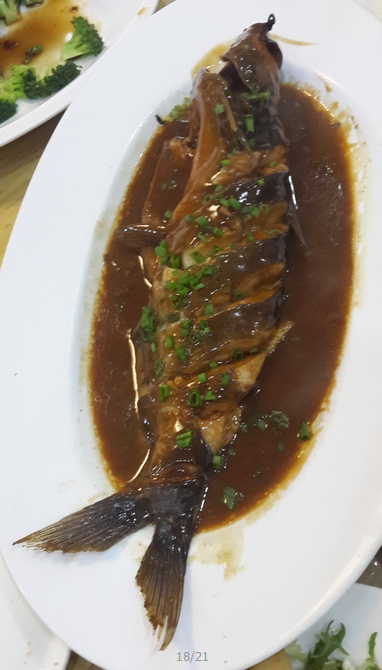 进门一问才知道,原来这是海鲜店啊,这里的海鲜套餐是68元、88元每位的哦,听起来还真是有点小贵哦!老公告诉我说再换一家吧,公公是不吃海鲜的哦!这不我问了问才发现原来也有点餐的哦,是50元一位的哦!这不我们是五个人,店家很聪明的说:哦,那就点260元的套餐吧!行,那就开始准备去吧!我们坐下后来,服务员很快捷的送上了餐巾纸两盒,餐具六套,我们以为这样的套餐还能不带餐巾纸?这不直到最后结账的时候才发现娘来,这餐巾纸还收钱呢,真是够抠门啊! ![]() ![]() 这一套的小餐具还是蛮俊俊的啊 ![]() 刚坐下就上来了四个小凉菜啊,说是赠送的哦,这摆盘还是蛮俊俊的啊,橙汁木瓜 ![]() 这是凉拌苦菊,这个比较赞哦,这有点儿酸,有点甜,上面还有脆果,好吃! ![]() 这个肠具体叫什么说不上,但一准儿是自己灌的哦,因为中间加的是蛋黄,这样的东东保质期也不会太长了吧,好吃! ![]() 再就是一个黄瓜了哦,说是辣黄瓜还是姜什么的额,我不喜欢吃所以直接就没有拍照啊!这不上来小菜服务员问我们喝什么茶啊?大家一致要求来个菊花茶吧,还蛮便宜的哦,10块钱,同时还赠送的一盘的小冰糖,哈哈,小子一中午一口饭没吃,单单吃了这么四五个小冰糖啊 ![]() 正式开始上主菜了哦,这个名叫:锅巴脆香骨!刚一开始听到服务员让我们选单的时候还以为是锅巴脆香菇呢,想想还是不要了吧,换成花蛤吧,这不人家说这个菜很好吃的哦,把另外一个菜给我们换了下说是有花蛤了哦,那就要把!哎呦,上来后那叫一个美啊,一圈的脆香锅巴,中间是炸的脆骨哦,真的是好好吃啊!得亏没有讨厌它啊! ![]() 酱汁牛蹄筋,平日里我们买的牛蹄筋都是散的哦,人家这里压成了椭圆形,同时周边有西兰花的装饰,真是好看啊 ![]() 接着来了一个两连蒸,会是哪儿两连呢,说话间来了一连的花蛤,哇,这花蛤也就蒸了五分钟的感觉啊,这不拿起一个一尝,哇,好新鲜啊,同时蘸点儿芥末酱,太美味了啊!就连平日里一口不吃花蛤的公公都说:够新鲜哦! ![]() 这第二屉呢,蒸的就是小窝窝头呢,哈哈,具体什么菜我们也叫不上名字来,不过老人们还是蛮喜欢吃的哦,我和老公一人就尝了一个,爸妈他们都吃了两三个的样子哦,松,软,香!这小小的个头蒸起来多省火啊!不过做起来可有得小费劲儿了哦! ![]() 这接着来的就是:胶东庄户人家菜!起的名字还怪好听的呢,那就一起来尝尝味道吧!因为这个菜就放到了我的跟前,加之我也是小辈,那就由我来负责为大家卷着吃吧 ![]() 一个个的小碗上都有一个:丰啊!一看就是浓浓的庄户丰收气息啊!喜欢!拿起一张小饼,抹上豆瓣酱、加上几根咸菜,再来几段小葱,最后一定要加上酥酥脆脆的小炸货哦,小饼一卷,哇,真的是太好吃,太好吃了啊!我吃了两个还不过瘾呢! ![]() 嫩藕炖排骨,说的这么的好听,不就一排骨汤嘛!哈哈,话说这排骨做的味道真的是很一般的哦,最要命的是就只有薄薄的一层排骨啊,其他的都是藕,有点小坑人哦,看这大堡给人的感觉可是好多好多哦 ![]() 辣子鸡还是什么鸡,这些东东平日里经常吃,所以吃不出怎么个好吃呢,味道平平哦! ![]() 压轴的要数这红烧鲈鱼了啊!真的是太嫩太好吃了啊!话说我这貌似是第三次吃哦,超喜欢鲈鱼的软嫩,好吃! ![]() 虽然这样的好吃,但是儿子就是不往餐桌这里靠边啊!这不一转眼的功夫又开始去看海鲜了啊,这次盯着螃蟹看了起来,N多的螃蟹在打架哦!哈哈,蛮横的螃蟹谁才是最终的赢家呢?我说回过头来,妈妈给你和螃蟹一起照相啊!嗨,我越是喊他,他越是不回头了呢,无语,无敌的小臭子啊! ![]() 还有花蛤,中华鲟等等,一大排的海鲜,真的是看着就舒坦啊!后来我们还单独给小子点的家常藕,人家也愣是不吃,哎,这么好的一桌,小子就愣是饿着肚子回来了,遗憾啊! ![]() 本作品未经作者许可不得转载,转载请征求作者意见。擅自转载使用,将保留追究其法律责任的权利! |
