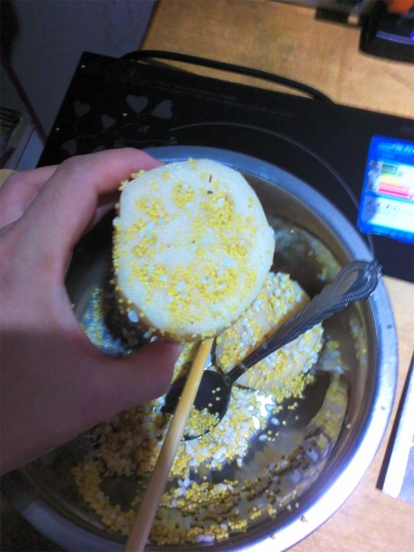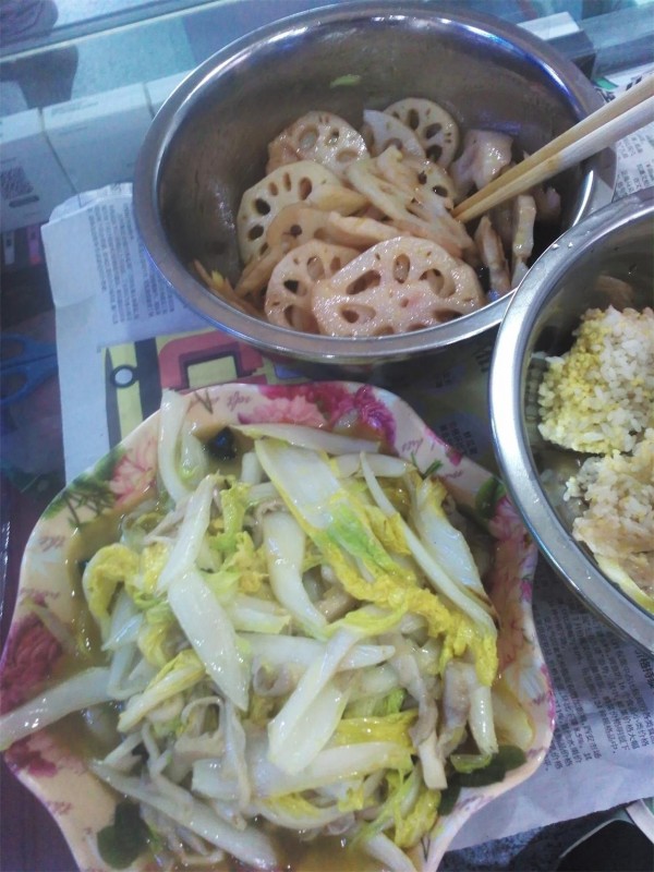 ![]() 说起做这个糯米藕藕,我还是前几天在咱们的地带上看了一位麻麻的巧巧手做的这道菜,我当时就很心血来潮地想做,但是苦于当时没有这些个材料,于是决定第二天一定要做一下,因为莲藕是我超级爱吃的菜菜哦。第二天一大早我就去市场买了二节莲藕回来,就像人家说的挑比较圆的,粗的,这样好往莲藕的洞洞里面填 米米,我是买了二个莲藕的,一个准备做糯米莲藕,一个准备用来凉拌的,因为只买一个的话有点不划算,呵呵。还买了一个娃娃菜和两把蘑菇,准备再炒个娃娃菜炒蘑菇,这个我也很喜欢吃的。 ![]() ![]() ![]() ![]() ![]() 回到家就开始着手做了,该洗的洗,该切的切,一切准备工作就绪,就开始捣鼓这个糯米莲藕了,因为家里只有两个锅,一个是炒锅,一个是电压力锅,用来蒸米饭的,所以我要先把糯米莲藕做好,放在压力锅里和米饭一起蒸熟的,趁着洗菜切菜的时候先弄了米(大米和小米各一把)泡上,挑了一根比较粗短的莲藕,把一关切掉一点儿,就开始填 米米了,说实话,这可真是个功夫活儿,我准备了一个小勺子专门往莲藕的洞洞里倒米米,再拿来一根筷子把填满的米米往里面戳,小勺子倒一下,米米就满了,就要用筷子住下戳,这样反复多次,我估计大概也要用了半小时的时间吧,才把米米填满,这就算是大功告成了一半。接下来把填好的莲藕和米饭一起放在电压力锅里蒸好了。 ![]() ![]() 另一个莲藕我是用来凉拌的,洗净切成片,放在开水里焯熟,调料入味即可。 娃娃菜炒蘑菇也很简单的,娃娃菜切丝,蘑菇手撕成条,油锅热炒就行了。 ![]() ![]() 不一会儿米饭就熟了,打开一看,嗯,一股莲藕的清香扑鼻而来,拿出来放凉就准备吃的,谁知刚切了几片,尝了尝,挺好吃的,莲藕很香甜,已经熟透了,米也很烂,虽然不是糯米不很粘,但是搭配起来还是很好吃的,就是到了中间的部位感觉那个米米好像还有点硬,我想着干脆放到晚上,做个稀饭,放点红豆,花生米,冰糖一起再煮一下的。于是就把前面熟透的切成片儿,孩子看见了就急了,以为是什么小零食了呢,拿在手里直接吃了,吃完一片还要吃,一连吃了好几片呢, ![]() ![]() ![]() 嗯,孩子喜欢吃,以后多做几次。 来个全家福吧