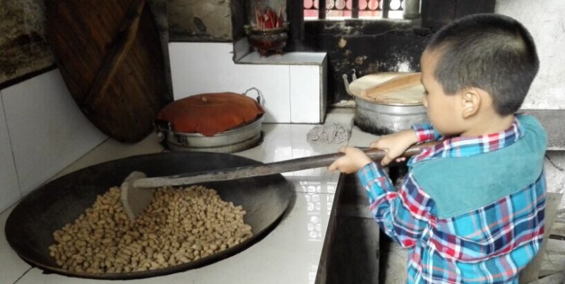 孩子也可以帮忙了,看到这花生就感觉很香。
