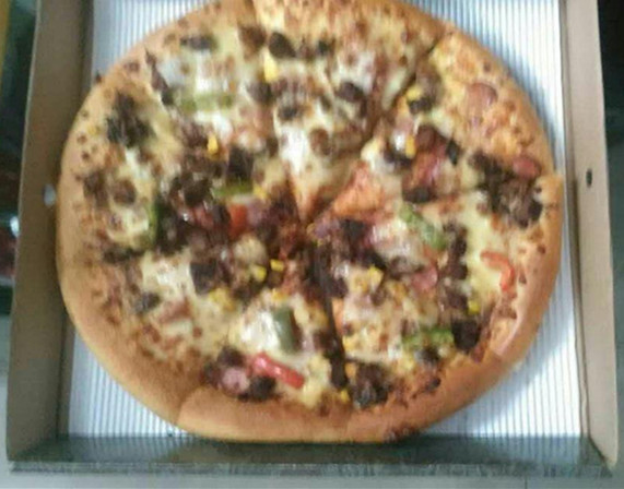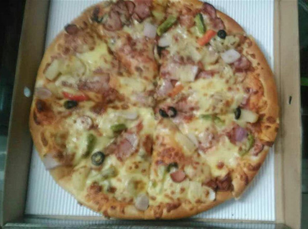 ![]() 临近中午,老大突然在群里公布让大家不要叫外卖了,她要请我们吃披萨,顿时大家激动欢呼一声,然后继续上班哈。中午下班时,披萨已经送过来了。整个办公室顿时飘风四溢。满满的诱惑啊,肚子饿了!一共是三种口味,目测应该是12寸的,一盒切成八大块。平时我们很少吃披萨,就年初那会与闺蜜聚餐时吃过一次,平时我们一家外出吃饭也不会去披萨餐厅。在我们看来披萨与KFC、M家这一类相似,偶尔吃一次还可以。 美食当前,勇往直前!先来个大合照,这是三盒叠在一直拍的,看封面以为是点的榴莲口味哈,结果不是,好想尝一尝这个味道的: ![]() 华丽丽的三个超大披萨,借用同事拍的照片: ![]() 水果什锦披萨,菠萝、椰果等。最受欢迎的也是最先被瓜分了,本来点的两盒,结果外卖小哥送错地了,送到老大家里去,她家留了一盒。后面又追加点了一盒,因为正值饭点时间,所以就晚了一点才送过来,追加了三盒烤翅,味道像奥尔良烤翅,美味啊!顾着吃,没拍照了。 ![]() 至尊牛肉披萨,上面是牛肉丁、香肠、洋葱、青椒还有菠萝等,味道也不错,手机拍照像素不好。 ![]() 超级豪华披萨,就是培根多一点的什锦口味,同样料很丰富。 ![]() 虽然看着是只有四个大披萨和三盒烤翅当午餐,但我们8个人却吃得很饱,最后还有剩余两块披萨,一块鸡翅。因为大家实在太撑了! ![]() 本作品未经作者许可不得转载,转载请征求作者意见。擅自转载使用,将保留追究其法律责任的权利! 个性签名