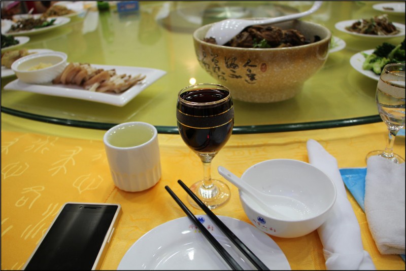 另外就是蒙山野猪肉,是纯煮出来的,然后有蒜泥调味料在旁边,单吃野猪肉就没什么味道了,沾沾那蒜泥的调味料,味道立马不一样了,每次吃到嘴里,都会感慨果然野猪肉和饲养的猪肉是完全不同的口感啊。鱿鱼、羊肉、蒙山的野菜等,都也是很不错的菜,所以说这吃的不是价钱,而是山里的野味,就是不同的,我觉得我们这次的聚会其实在吃方面,就会留下深刻的印象。就好像如果去海边,怎么也得尝尝那海里的味道吧,而到了山里,就要吃点山里的野味。 有个同学直到这餐才来,不过她也带来了她们那里比较有名的红酒。我是很爱喝红酒的,也是没有抵挡住红酒的诱惑喝了起来。同学说她们的红酒主要以美容养颜为主,其中包含了不少的中药,非常适合女人喝,无论调理身体,还是美容养颜,都有着比较显著的效果。不过这红酒的后劲挺大的,我喝了两杯就已经双颊通红,被同学笑着说我酒量比较浅。哈哈,哪怕没有红酒的酒劲,就这么多年同学难得的团聚,也会让我如痴如醉,高兴不已啊。 ![]() ![]() 蒙山野猪肉,量不大,但是味道却是非常好。 ![]() ![]() ![]() 蒙山松菇炖鸡,比较有名的一道菜。 ![]() 还有蒙山蝎子,看起来比较可怕,其实我也没敢吃啊,哈哈。 ![]() 还有美容养颜的红酒,中西结合的美食哦。 ![]() 这次的合照中有我了,不知道你能找到我吗?嘻嘻。