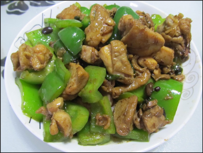 主厨妈妈我今天又来晒厨艺喽!最近好少晒做菜,主要是赶上了假期,经常在外面吃饭,加上生病都是老公主厨。可是这不是自己馋鸡肉了嘛,就去超市买了几个鸡大腿,剁好了回家加上菜椒,小炒了一盘,那叫一个香啊。还有Aric最爱吃的小青菜,小家伙早就点了好久了,直到现在才给他做,真是很抱歉啊宝贝。老公顺便炸了个米豆,不知道在别的地方是这么叫吧,味道也不错哦。 可能我家习惯了大油吧,总感觉油好像放的多了点。我们习惯吃花生油,是老公在婆家带回来的,自己榨的花生油,很香。我觉得非常有必要说说我的辣子鸡,和外面炒的有点不同,因为我炒的没有放太多的料,毕竟适合小朋友吃。先是油锅加热,然后放入葱段姜片,再把切好的鸡肉倒入锅中翻炒,大概变色了以后就放入酱油,然后就是酱。以前我们放六月香,现在放的是老妈自己做的酱。