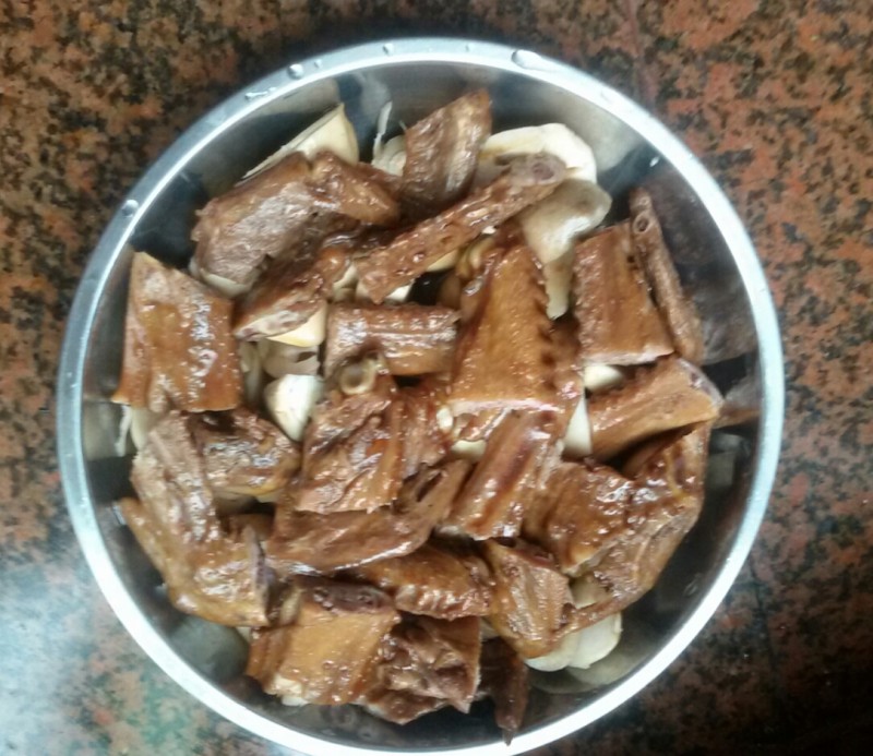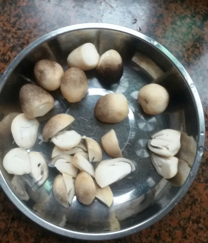 做饭的时候,我就把鲜草菇切小块,然后准备和鸭翅膀一起上锅清蒸,连盐我也没有另外加,只是把买鸭翅膀配来的酱汁一起倒入盘子里搅匀,然后在锅内加入蒸架,然后再放入搅匀的鸭翅膀和鲜草菇一起清蒸。饭熟后它们也熟了。 本以为这鱼草菇这样做应该不太好吃,可想不到它竟然非常好吃,又脆又甜的,夹杂着鸭翅膀的香味,越吃越想吃,可惜的量太少了,一大半都被小不点吃了。而鸭翅膀也非常好吃,小家伙也能把鸭中翅啃得很干净,他一连吃了四五块还想要呢。