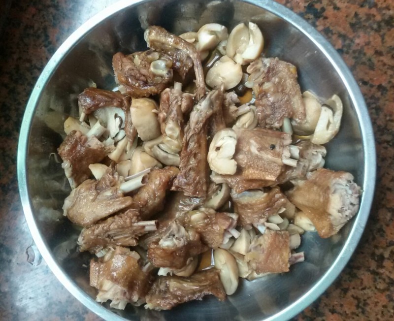 鲜草菇蒸鸭翅膀 平时我们很少买外食来吃的,但自从上次邻居介绍我到这家南海烧烤店买过一次鸭掌后,我就觉得偶尔吃吃也不错。本想像上次那样买鸭掌吃的,可考虑到小不点上次都不会吃鸭掌,他啃了几口就不扔了,基本上都浪费掉了。所以我这次没有买鸭掌,而买了鸭翅膀。 想到我们很久没有吃蘑菇了,加上现在的天气正是吃蘑菇的好季节,于是买了几元钱的鲜草菇,想用它来跟鸭翅膀一起清蒸,这样小不点就不会单单吃鸭翅膀了。