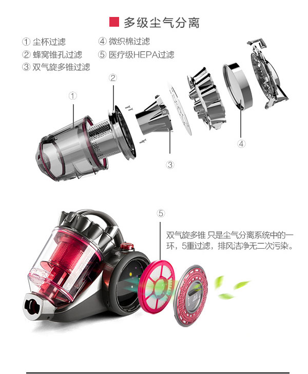【持久大吸力】多锥旋风捕捉过滤细小微尘可达0.3um