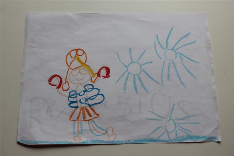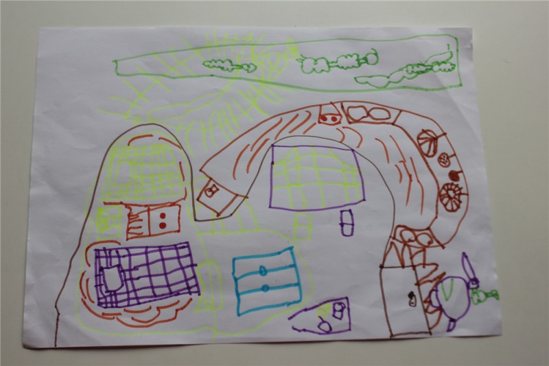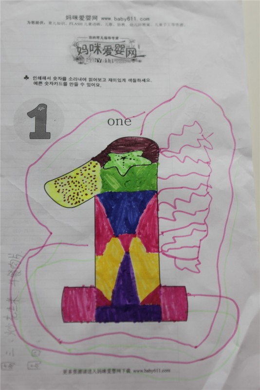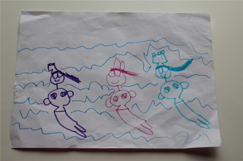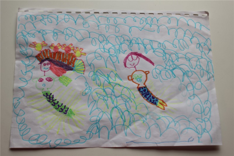 这个是 奇怪的1. 涂色的。闺女自己把1分成了好多色块。很有对称美呢。然后又很有创意的在1的长嘴上点了一些小点点。忘记问了这是怎么回事。不过,我看着很有创意啊。反正我是画不出来。 ![]() 这幅画叫 小兔子的家。她最爱的Y可爱和W乖乖的家。家设计的像迷宫一样。我没看明白。 ![]() 这幅画叫女孩与风筝。运用了对比色和动作线。 ![]() 直到现在,闺女还痴迷画美人鱼。家里的墙上让这个小孩乱七八糟的画了好多款美人鱼。有些美人鱼看的出来,大长尾巴,披肩长发,颇有美人风范。 这个叫人鱼姐妹。 ![]() 这个叫人鱼巡游。开始我觉得,三条人鱼应该叫巡游。因为巡游需要的人多啊。后来一看,巡游的人鱼打扮都很隆重,闺女这么起名是有道理的。 ![]() 这幅画的名字叫 溜冰的我。问小朋友旁边那三个蓝色的什么。开始我以为是太阳。但转念一想,不可能有三个太阳吧。闺女跟我说,那是雪花。呵呵。 ![]() 本作品未经作者许可不得转载,转载请征求作者意见。擅自转载使用,将保留追究其法律责任的权利! |