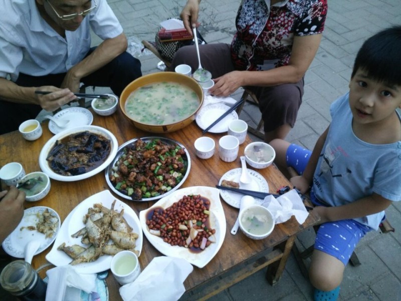大盘鸡是最好吃的,毕竟我们临沂最有名的就是炒鸡,只放了青椒没有放红椒,肉肉也比较多,得到了家人共同的赞扬,说这里吃饭还是蛮实在的。还有凉拌花生米也是挺好吃的,放了洋葱,很清爽的一道凉菜。而茄子的口味是最一般的,没什么特色,毕竟这里以羊肉为主,还有大盘鸡比较有名,其他的菜感觉都没什么很让人值得留恋的地方,只能过来吃一吃,不能说好还是不好。 羊血我从来不吃,也不敢吃羊血,不过这点Aric和我一点都不像,他特别爱吃羊血,倒是让他包揽了不少。因为有老公和老爸,所以他们还开了两瓶啤酒,边吃边喝边聊天,一家人一起很开心。现在出门吃饭也都喜欢提前预定了,毕竟预定的要划算一些,而且还不用多等,虽然这里离我家有不近的距离,开车都用了一个小时,但是这么多菜,这么划算的价格,还是很让我们满意的。 ![]() 凉拌花生米 ![]() 大盘鸡 ![]() 炒羊血 ![]() 老醋茄子 ![]() 羊肉汤 ![]() 煎鱼 ![]() 土豆丝 ![]() 满满一桌子的菜,可是只有四个大人一个孩子吃。 ![]() 偶尔迎合爸妈的口味,喝点羊肉汤,吃点羊肉和家常菜,其实只要爸妈开心就好,也是很满意的。