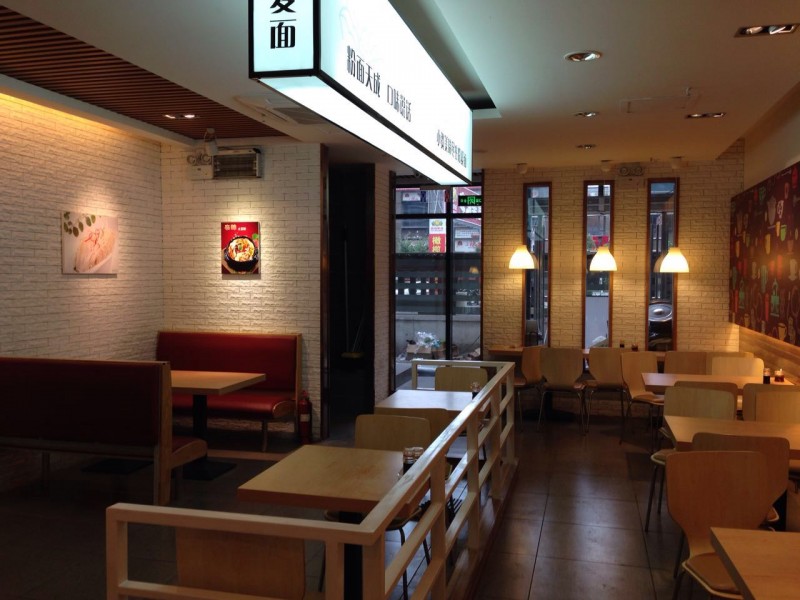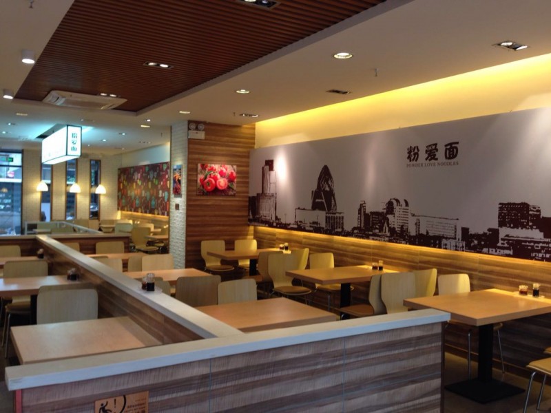 上周六,天气晴好,雾霾散去,蓝蓝的天空隐隐约约能看见几朵棉花团似的白云。吃完早饭和闺蜜打电话去逛街买衣服,在一家衣服店我们俩左挑右选墨迹了一个小时,看这件好看,再看其他件也很好,得得,最后下定决心全收啦,到收银台结账,哇塞!大包小包的五六包,买完衣服肚子响了咕咕叫,走在路上看到一个招牌上的名字太有意思啦,写着“粉爱面”好浪漫的名字,餐馆的名字也可以这样的浪漫,名字如其店,跟我俩想象的一样,进店一看装修风格特别不一般,在吃货界我们也是资深吃货,哪种饭店没见过,哪种风格没见过,看着现代气息的壁纸,低矮的灯饰,我的头脑中立刻出现一个罗曼蒂克的场景:晚上,温暖的灯光在低矮的灯饰下更加温暖,吃着粉爱面还有香喷喷的小吃,说着悄悄话。