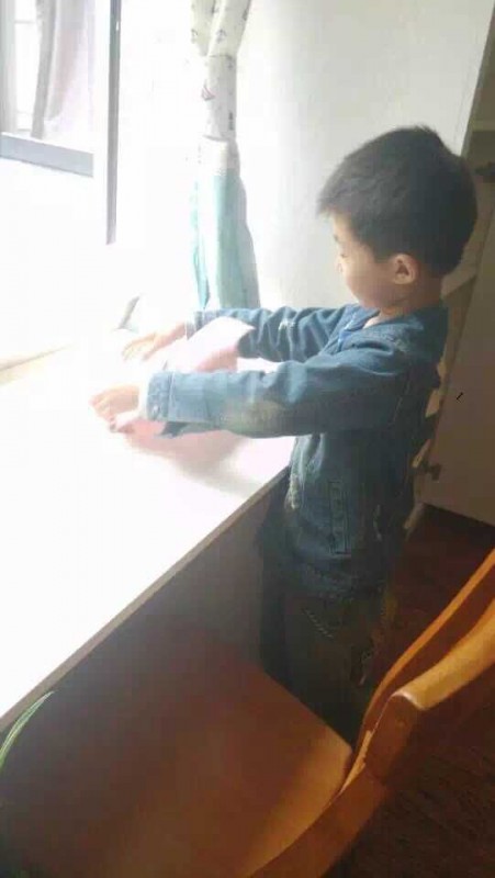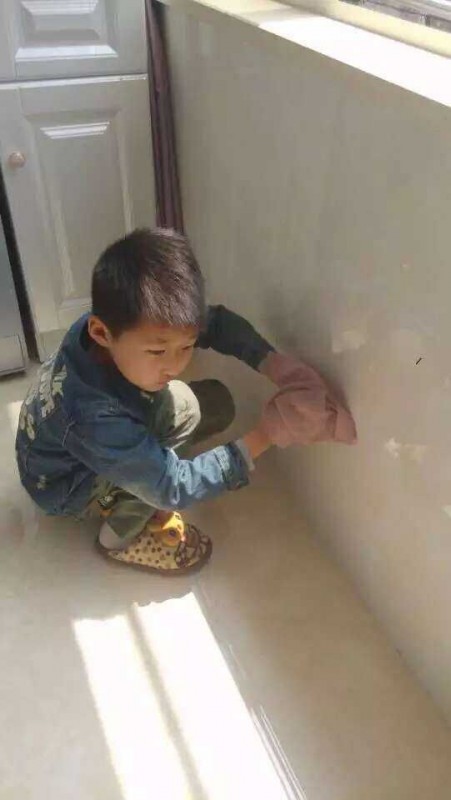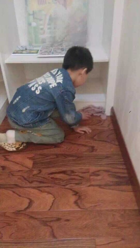 我在擦地的时候,然后点点就去擦窗台了,等点点擦好窗台过来的时候,我还没有擦好地,点点就过来帮忙,点点擦地的时候就是有一个毛病,毛巾上面的水太多了,于是我就教他把毛巾上面的水绞干再擦,这样地板就不会那么湿了,我们一起擦了半个多小时,地板就擦完了。