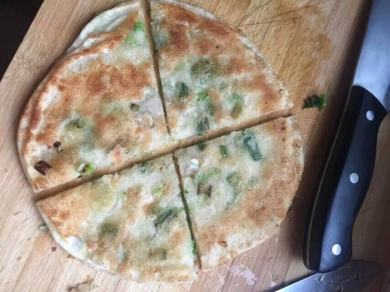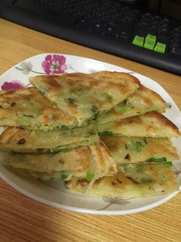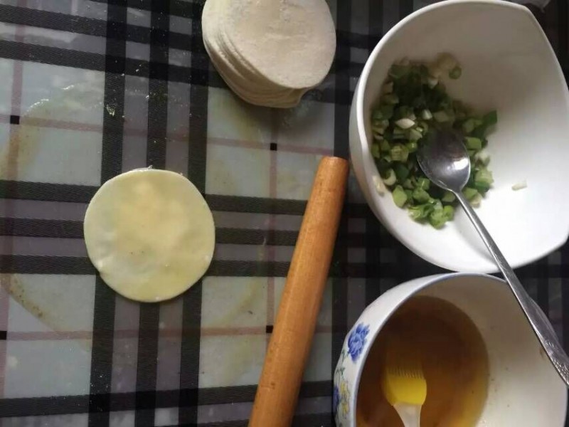 其实我不是一个太擅长做面食的人,不过我家宝贝和老公却偏偏喜欢吃跟面有关的食物,比如饺子、馄饨、包子等等,每个周五我会提前问孩子想吃什么,这周五宝贝希望第二天早上吃油饼。油饼,怎么回想起这个呢?经过我的追问,才知道原来最近幼儿园做了一次油饼,宝贝没吃够,所以希望妈妈爸爸周末给自己做。开始想找一家有名的油饼店吃一顿,可是爸爸说,外面卖的油饼不知道用的油好不好,而且也不知道干净不干净,油饼制作的程序应该还不难,如果可以的话,我们自己在家做一顿。我也觉得爸爸说的有道理,于是决定第二天自己做。 可是家里东西不全,没有做油饼需要的面呀。大早上的,哪里买面呀。还是爸爸有主意,楼下小吃部卖饺子皮,买点上来,看看直接当皮吧。爸爸说的开始我不同意,总感觉是不是太薄了,怕一弄就露馅了,可是也算是一个办法,既然答应孩子了,就希望能亲手做一次。于是按照爸爸的想法,我买了1斤的饺子皮,趁我买皮的功夫,爸爸把油饼需要的葱花早已经准备的差不多了,一切准备就绪,就等着开始动工了。