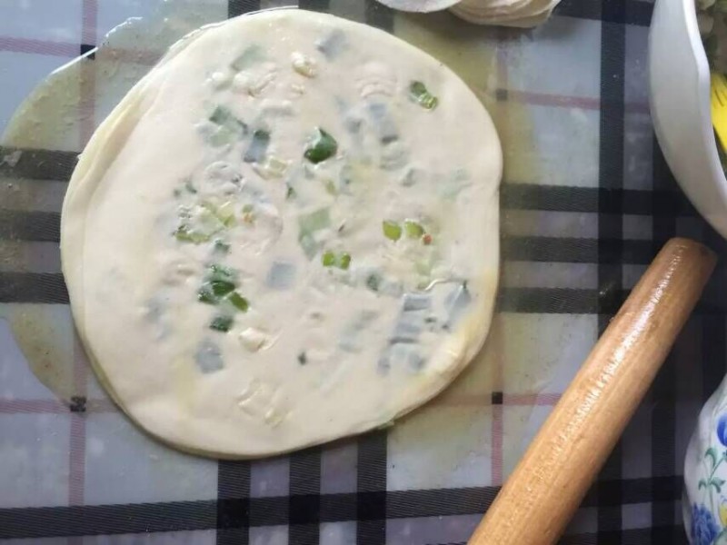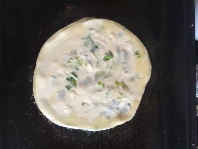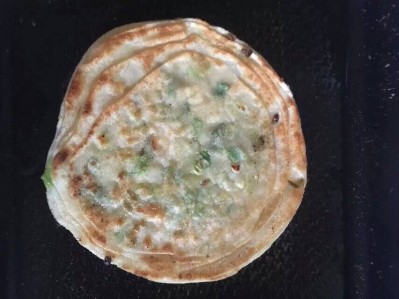 因为不用和面真的方便很多,把现成的饺子皮粘少许油,放入适量的葱花,然后在放一层饺子皮,这样就开始擀面皮了,你需要做多大的油饼就擀多大,也别太大了,因为饺子皮薄,别楼窟窿了。接下来就该放入到锅中烙了,一边烙饼一边就可以闻到浓浓的面香味扑面而来,真的是回味无穷呀,用不上几分钟,黄澄澄的油饼就出锅了,看上去真的非常有食欲,整个过程用不上20分钟,既方便又省事,而且还是宝贝的最爱,就等着我家牛起床享用了,哈哈,不太擅长面食的妈妈也可以试一试,省去了和面的烦恼,其实做面食也很简单哦。