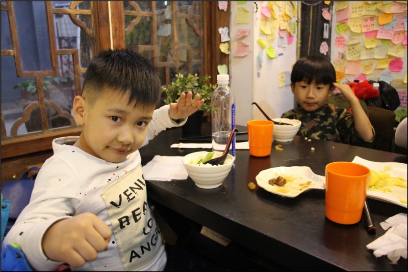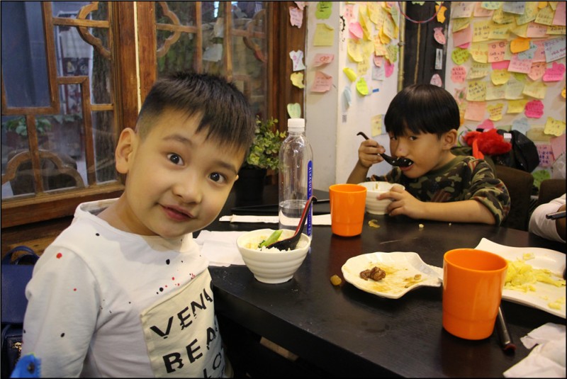 因为上次哞妈他们去青岛旅游的时候,我们请他们吃了饭,这次去北京,哞妈就特别客气的请我们吃了这餐饭。这是在南锣鼓巷逛街的时候,找的一家餐厅,话说北京的吃饭确实也是比较贵的,或许是在景点内吧,不过味道也确实很赞。都是北方人,口味相差不大,我比较喜欢北京的美食,口味重,肉肉多。忘记说了,哞妈她们是回民,吃的大多是鸡肉、羊肉一类的,我们爱吃的那种肉她们不碰。 我不记得菜品了,只管吃,而且这些菜都是哞妈点的,毕竟我们点餐可能会不大注意到她们的口味。从这点可以看出,哞妈是个强势的女人,在后来出去吃饭,也都是哞妈直接拿餐牌点餐,我也放下心来,不用怕引起不必要的忌讳。Aric倒是主动点了一个虾仁鸡蛋,对于小孩子来说,这个是很有营养的,也是我们常吃的一道菜。而哞哞姥姥爱喝汤,哪怕没汤也得喝点粥什么的,其实我也是如此。