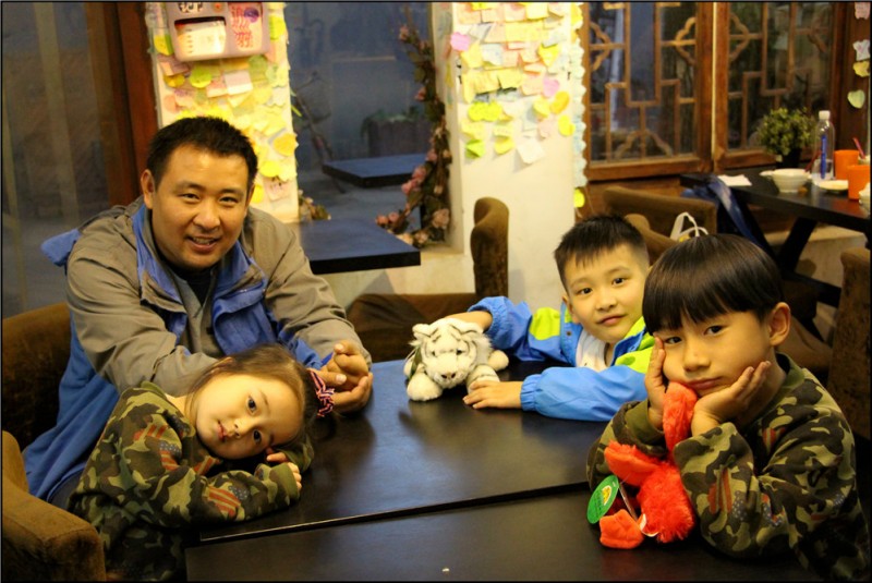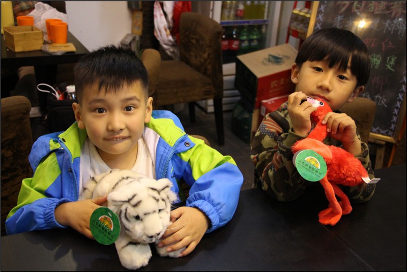 这次点的菜有牛肉,有鸡肉,有西蓝花,有虾仁鸡蛋,还有土豆丝和西红柿蛋汤。不过都是小份,量特别少,倒也够我们两家人吃的。Aric一向吃饭都很乖,这次倒是总让我生气,因为他和哞哞面对面坐着,一起比赛谁吃得快,谁吃得多。而且这俩小子还做了一件坏事,把汤汁弄到了我和哞妈的衣服袖子上。那天也巧了,我们都穿的是白色,很明显的汤汁,搞得我们郁闷的不得了,男孩太皮了。 老公吃的最晚,也是吃的最快,吃完了就帮忙带孩子,领着哞哞、幼幼和Aric三个小家伙跑到隔壁桌坐着玩。现在幼幼可是很喜欢凯爸的,她和哞哞都说凯爸比他们的爸爸要好,因为凯爸爱和孩子玩,会逗得他们哈哈大笑。幼幼可是个小吃货哦,爱吃、好吃、吃的多、也吃得香。我特别爱拍幼幼吃饭的样子,那么的萌。相比较两个男孩就那么的调皮,爱乱跑,老公一人带三娃倒也很轻快,我们也可以好好的吃饭了。 ![]() 戴了一天的帽子,小家伙的头发这趴趴的好不适应啊,哈哈。 ![]() 一脸严肃在选菜的哞妈,女人好瘦,呜呜,我是胖在脸上和大腿,羡慕她这身材啊。 ![]() 不记得菜名了,这是牛肉。 ![]() 虾仁炒蛋 ![]() 清炒西兰花 ![]() 这是鸡肉 ![]() 凉拌土豆丝 ![]() 两个男孩吃饭的时候很爱比赛哦。 ![]() 还有可爱的幼幼小吃货。 ![]() 在野生动物园,Aric买了一只小白虎,哞哞家买了一只火烈鸟。 ![]() 吃饱了休息休息。 ![]() 凯爸吃完了先带着三个孩子玩着。 ![]() 话说凯爸是真的挺有孩子缘的,主要是他会随时笑着,耐心的陪伴孩子。不过吃饭的时候被我批评了一顿,接电话接个没完,因为这一走就是四五天,工作的事情还需要电话操控,这忙碌的男人啊,着实令我忍不住想说说他。