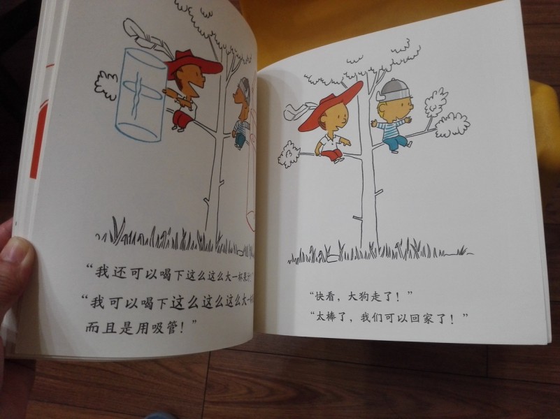 创意大师之《谁厉害》,由长江少年儿童出版社出版,【德】奥勒.科内克著绘,任庆莉翻译。 因为有了前期的分享课,所以给宝贝讲述这本书的时候,就显得特别的驾轻就熟,我先是让宝贝自己阅读了一遍,然后再和她一起分享,以下便是我们俩个人对于这本《谁厉害》的一点小小的体会: 1.无比真实。 提起这本《谁厉害》,就不得不提我家宝贝,平时我和宝贝经常在家里玩一个游戏,就是比比谁能干,我们也像书中的两位小主人公一般喜欢互相“攀比”,各种天马行空地想像呀。所以呀,这次看到这本《谁厉害》,突然觉得有种好亲切,似曾相识的感觉,哈哈,原来书里的故事离我们是如此的近呀,真是一本特别真实的书。怪不得宝贝看完以后,就直接大笑着说:妈妈,这两个小朋友和我们好像呀,你说我们谁是谁呀? 2.神奇想像。 哈哈,各位是不是要说了,刚说这书真实,怎么又是神奇的想像了。可不要急,这两件事可一点都不矛盾呢。书中的故事既是真实的,又是虚幻的,真实在于确实这些事在生活中经常发生,而虚幻呢,则是这两位小朋友的超大胆的假设。我们也会想像,但不会像他们这么大胆,他们可以想像自己把钢琴举起来,把老虎抬起来,...... 3.回归真实。 这本书给我的感觉就是分三步,真实--假设--真实。两位小朋友的奇思妙想被最终被两人的共同敌人--小狗所逼回原型。虽然在逃避的时候,两人还不忘编些大话,但当小狗离开时,两人又恢复了原本的天真和单纯,快乐地回家吃饭去了。 这本书充满了童趣,也充满了想像。通过一起亲子阅读这本书,让我和宝贝更加爱彼此了,我们也像书中写的那样:我们的“争吵”在想像中爆发,也在想像中重归于好。我们享受着互相“争论”的乐趣,我们要像朋友一样的快乐地生活。 本作品未经作者许可不得转载,转载请征求作者意见。擅自转载使用,将保留追究其法律责任的权利!