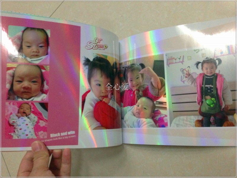 别小看这么一本小小的画册,里面竟然可以放得下六十多张照片,每张都是我精挑细选的,客服在我发送照片之后就开始动手制作了,十天不到的时间我就收到了这么一份成品。每一个页面了吗?我是在晚上的灯光下拍的,真的很有2D效果,闪闪发光。这么一份特别的礼物先给想念桐和小贝的爸爸妈妈,应该是最好不过了。最重要的是它不变形,不易折,放水,很贴心的设计。有这么一本画册,即使他们经常拿出来翻阅也不会泛黄了啦。等下一次回老家了,就再跟爸妈分享下她们这两个可爱的小外孙每张照片背后的有趣故事。