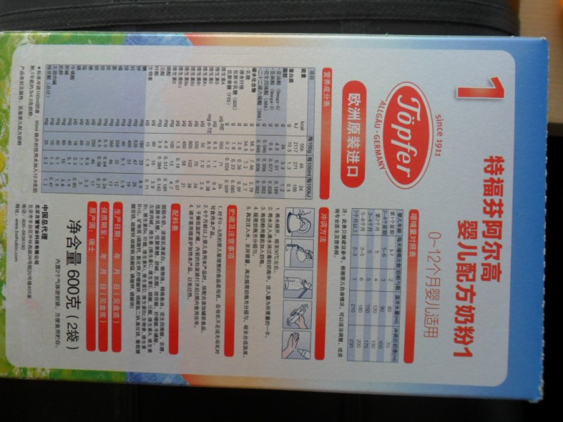 特福芬德国百年乳企业。1911年特福芬公司成立,是德国最早从事婴幼儿食品研究生产的企业之一。1923年开始生产婴幼儿轻度货中度腹泻的专用乳品。1948年开发出世界上第一个将双歧因子应用于消化功能较弱的早产儿的乳制品。1953年研发出在婴儿配方奶粉中添加益生元的技术。1966年世界上第一次将活性益生菌分离出来并添加到婴幼儿食品中。1989年开始生产有机婴幼儿配方食品,生产出世界上第一款添加活性益生菌的有机奶粉。2009年特福芬婴幼儿产品开始进入亚洲市场。2011年特福芬成立100周年,庆祝了一百岁生日。2013年特福芬开发出阿尔高婴幼儿配方奶粉。特福芬奶粉可谓历史悠久,,每一滴奶都是特福芬工作人员精心配制。阿尔高奶粉奶源地位于天然黄金牧场,远离工业区,原生态系统,环境可持续,生物多样性。很好的一款奶粉。给宝宝试用后宝宝也很喜欢,奶粉味道清淡,冲泡后没有起疙瘩和挂瓶现象,无任何不良症状。很好的一款奶粉,超赞哦!会介绍给朋友的。