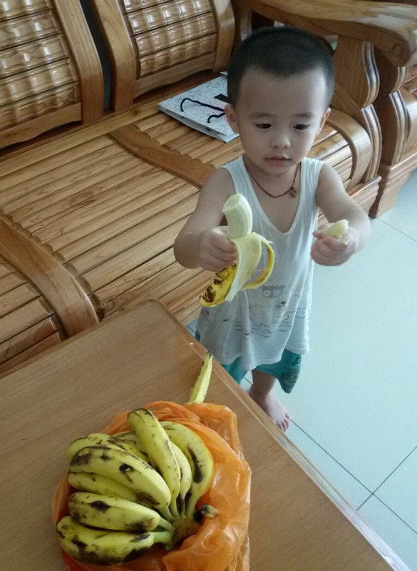 自打小起,小不点就是一个名副其实的“小吃货”、“小馋猫”。 记得有一次,宝爸买了一包威化饼给小不点作为平时的零食,刚买回来时我只让他只了一块就不让他吃了,然后我就把他放到认为他够不到的桌子上了,想不到他竟然趁我们不注意时偷偷爬进放饼干的房间里,然后踩着米箱的盖子上去偷吃威化饼。从那以后,家里的零食都不能放在桌子上了,都得放得他拿凳子也够不着的地方了。 小家伙一岁左右时,就非常爱吃零食了,面包、饼干、水果等他都喜欢吃,但他就是不吃甜甜的糖果。每当他看到别人吃糖果时,他也想要来吃,可当他尝到糖果的甜味后,他就会把它吐出来,剩下的那些糖果他也不要了。