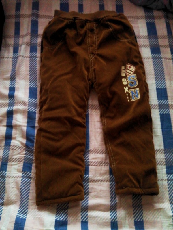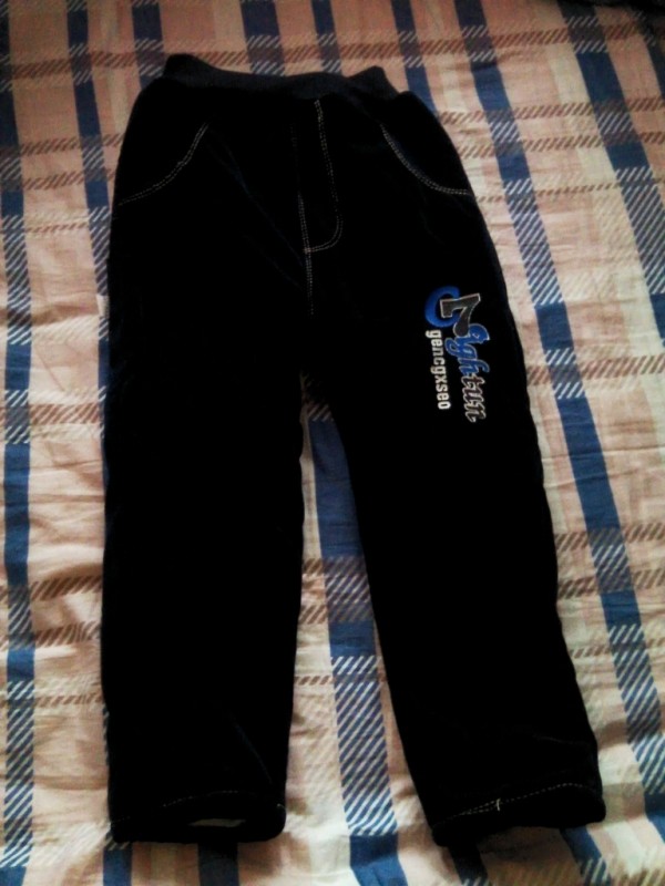 前两天逛街的时候,看到有卖棉裤的,本来看到的裤子都好大,后来好不容易找到有短点的裤子,但又怕孩子穿不了。这小子从小就怕试穿衣服,就询问了卖衣服的有没有皮尺,要是有我可以量一下裤子的长度。人家说有,立马拿过来给我了。量了下长度,再对比下儿子的身高,应该是可以穿的。