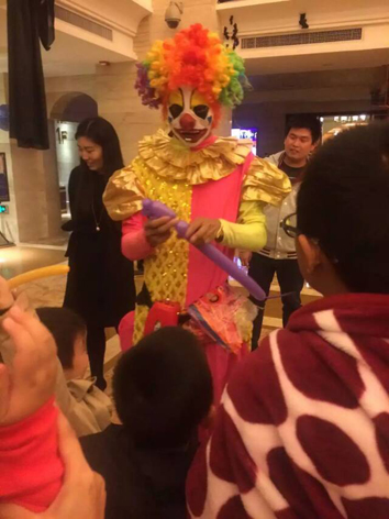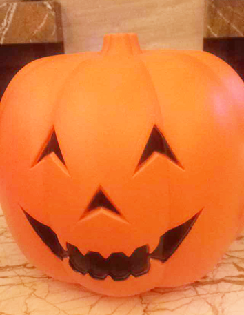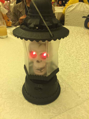 酒店里也有专门请来的小丑,毕竟有很多人参加是带着孩子在的,孩子可是很喜欢小丑身上的汽球的,而小丑的身边也围满了不少的孩子。 陆陆续续就开始来人了,大厅里的桌子上面会有好多的小装饰品,像小南瓜、人骨灯,这个人骨灯还会闪闪发光。摆在桌子上是特别显眼的,不过孩子已经开始不怕它们了,孩子只会觉得好玩而已。
