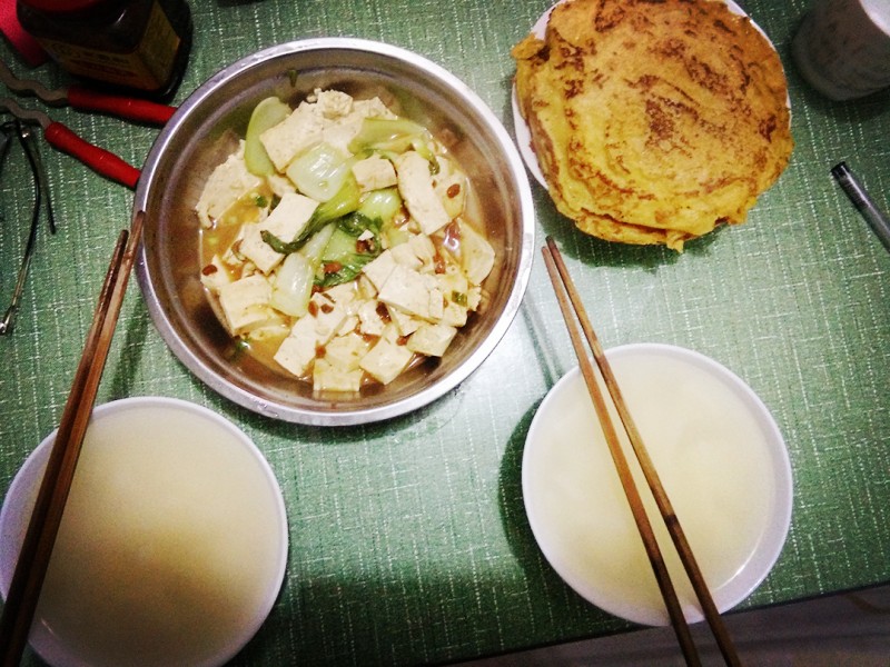 ![]() 以前在家的时候都是妈妈做给我吃,每次只是看着妈妈做,自己从来没有亲自动手做过,如今自己也即将为人母了,也算是提前练练手,尝试着做一次玉米面饼。以后也可以做给我们家宝宝吃,做一个和妈妈一样的好妈妈!我便想象着妈妈烙饼的步骤开始了今天的晚餐——香煎玉米饼。 ![]() 【1】把盆里准备好玉米面,少许白面,面里面加点发酵粉,为了增加营养,我里面倒了一袋伊利纯牛奶,也可以放一个鸡蛋在里面。慢慢加水把面搅成糊糊状,不要太稀,也不能太稠。也可以在里面加点点糖,我因为现在控制体重就没放。搅好以后放在暖气片旁边让醒发一个小时。 ![]() 【2】面糊糊醒发好以后就可以开始制作了,有电饼铛的话用电饼铛最好,我由于现在租房住,没准备电饼铛,直接用炒锅烙的。锅里面倒少许油,加热把油在锅里摇匀,基本锅底锅边都有油了,用勺子舀一勺面糊糊开始在锅里煎,煎到起泡泡就可以翻过来煎另一面,小火慢慢煎,勤翻着,一会一个香喷喷的玉米饼就煎好了。 ![]() 在煎饼之前我先熬上了稀饭,顺便切了点白萝卜,等稀饭快熟的时候把萝卜煮进去,对去火也很有帮助的。熬稀饭的时候得等一会了,这个时候我也不闲着,切了一块豆腐,洗了点油菜,准备好了葱姜蒜,打算一会烙完饼以后炒个豆腐。 ![]() 就这样,不一会香喷喷的晚餐做好了,因为我和老公不是一个地方的,他还是第一次吃这样的玉米饼呢,散发着玉米的香味,而且营养丰富,味道真心不错呢,看着老公吃的那么香自己都好开心。