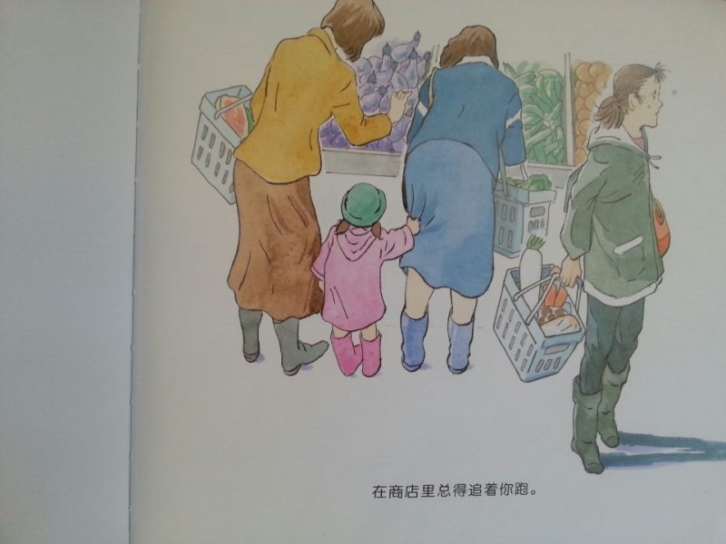 2、因为每一个场景都是日常写照,所以更容易激发孩子的阅读兴趣和想象力,带着宝贝阅读,每翻一页,宝贝都会询问我他小的时候也是这样么,特别是看到超市那页,书上的小朋友到了超市抓不着人影,还真是这个情况,宝贝看到这捂嘴哈哈笑笑,哈哈,我跟这个小朋友一样呢。当看到学校跑赛那页,小朋友一动不动不配合老师,宝贝大声的说,我就不这样,每次跑步我都是第一个跑出去的。哈哈,我跟这个小朋友不一样。看看宝贝对书中的每一页观察的都相当仔细了。